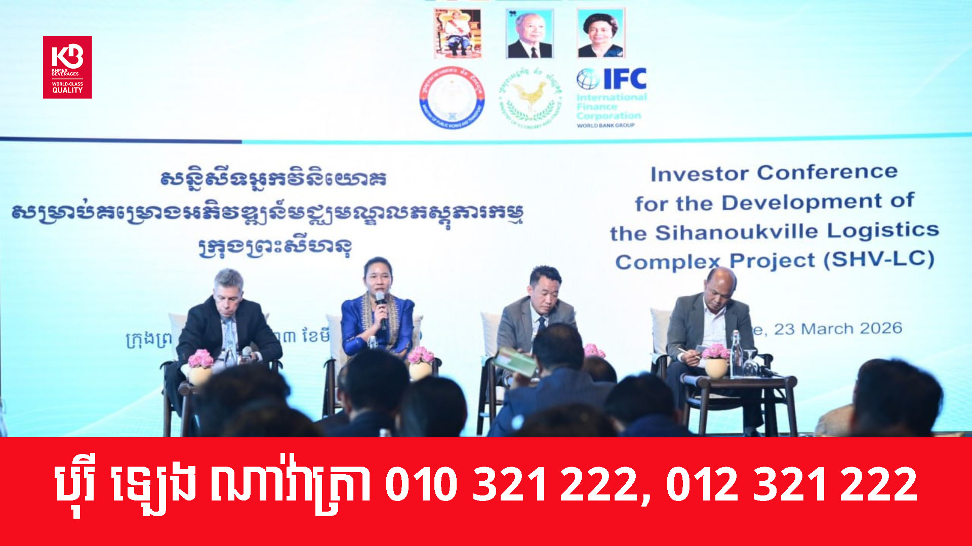 សន្និសីទអ្នកវិនិយោគជំរុញគម្រោងអភិវឌ្ឍន៍មជ្ឈមណ្ឌលភស្តុភារកម្មក្រុងព្រះសីហនុ បានរៀបចំឡើងកាលថ្ងៃទី២៣ ខែមីនា ឆ្នាំ២០២៦ ក្រោមវត្តមានមន្រ្តីជាន់ខ្ពស់ក្រសួងសាធារណការ និងដឹកជញ្ជូន ក្រសួងសេដ្ឋកិច្ច និងហិរញ្ញវត្ថុ គណៈអភិបាលខេត្តព្រះសីហនុ តំណាងស្ថាប័នសាជីវកម្មហិរញ្ញវត្ថុអន្តរជាតិ,កំពង់ផែស្វយ័តក្រុងព្រះសីហនុ និងមន្ត្រីជំនាញពាក់ព័ន្ធនៃក្រសួងទាំងពីរ។
