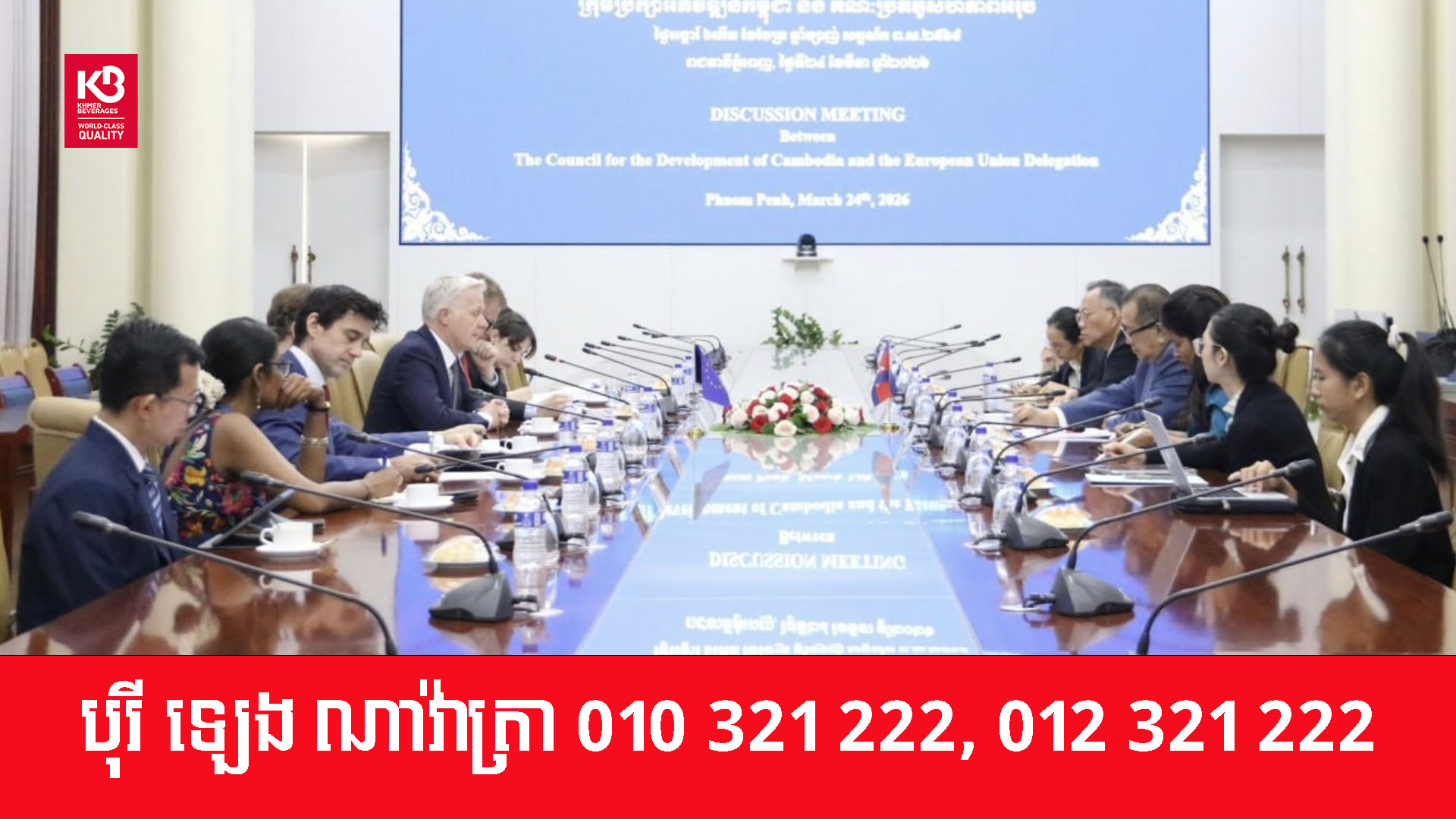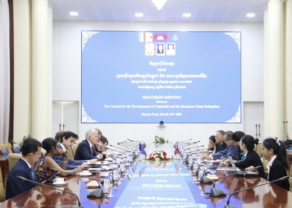 ក្រុមប្រឹក្សាអភិវឌ្ឍន៍កម្ពុជា(CDC) និងសហភាពអឺរ៉ុបប្រចាំព្រះរាជាណាចក្រកម្ពុជា កាលពីថ្ងៃទី២៤ ខែមីនា ឆ្នាំ២០២៦ បានបើកកិច្ចពិភាក្សារួមគ្នា ដើម្បីផ្លាស់ប្តូរទស្សនៈ ដើម្បីលើកកម្ពស់ភាពជាដៃគូឱ្យកាន់តែប្រសើរ។