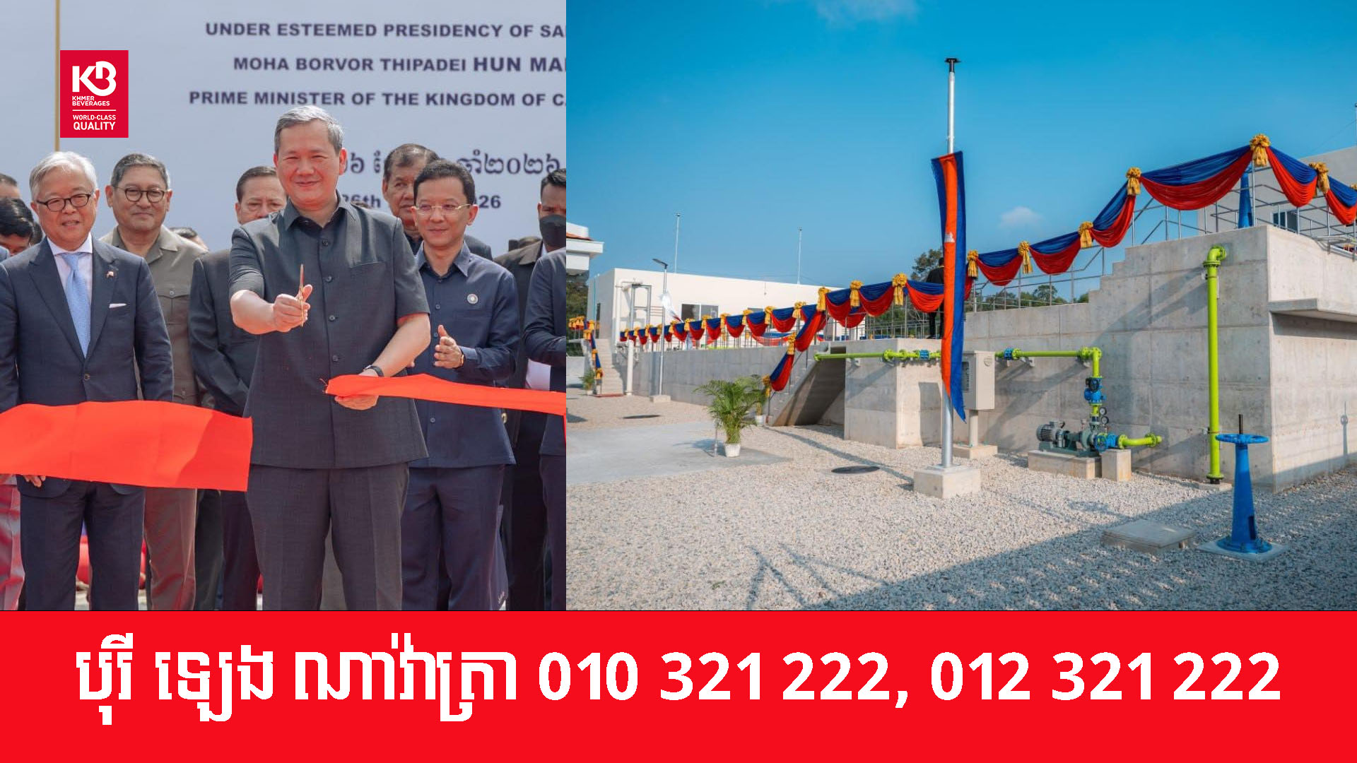 រោងចក្រប្រព្រឹត្តកម្មទឹកស្អាតអណ្តូងតាសី ដែលមានសមត្ថភាពផលិតទឹកស្អាត ៦.៨០០ ម៉ែត្រគូបក្នុងមួយថ្ងៃ ត្រូវបានប្រកាសសម្ពោធដាក់ឱ្យដំណើរការជាផ្លូវការហើយ ដោយសម្តេចធិបតី ហ៊ុន ម៉ាណែត នាយករដ្ឋមន្ត្រី នៃព្រះរាជាណាចក្រកម្ពុជា នាព្រឹកថ្ងៃទី២៦ មីនា ២០២៦។