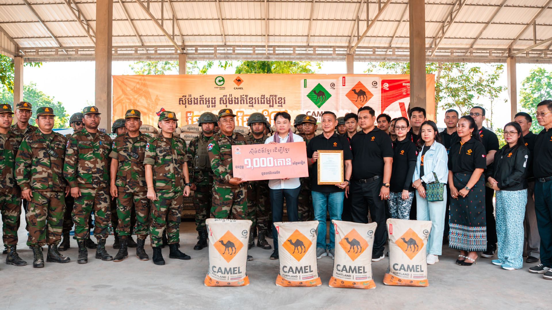 ក្នុងស្មារតីសាមគ្គីជាតិជាធ្លុងមួយ និងដើម្បីតបស្នងគុណ ទៅវីរកងទ័ពដែលកំពុងឈរជើងការពារទឹកដី ក្រុមហ៊ុន ស៊ីម៉ងត៍អូដ្ឋ ជីប ម៉ុង បានឧបត្ថម្ភស៊ីម៉ងត៍អូដ្ឋបន្ថែមចំនួន ១,០០០ តោន ជូនដល់រាជរដ្ឋាភិបាល សម្រាប់ប្រើប្រាស់ក្នុងកិច្ចសាងសង់លេណណដ្ឋាន និងហេដ្ឋារចនាសម្ព័ន្ធការពារជាតិ នៅតាមបន្ទាត់ព្រំដែន។
