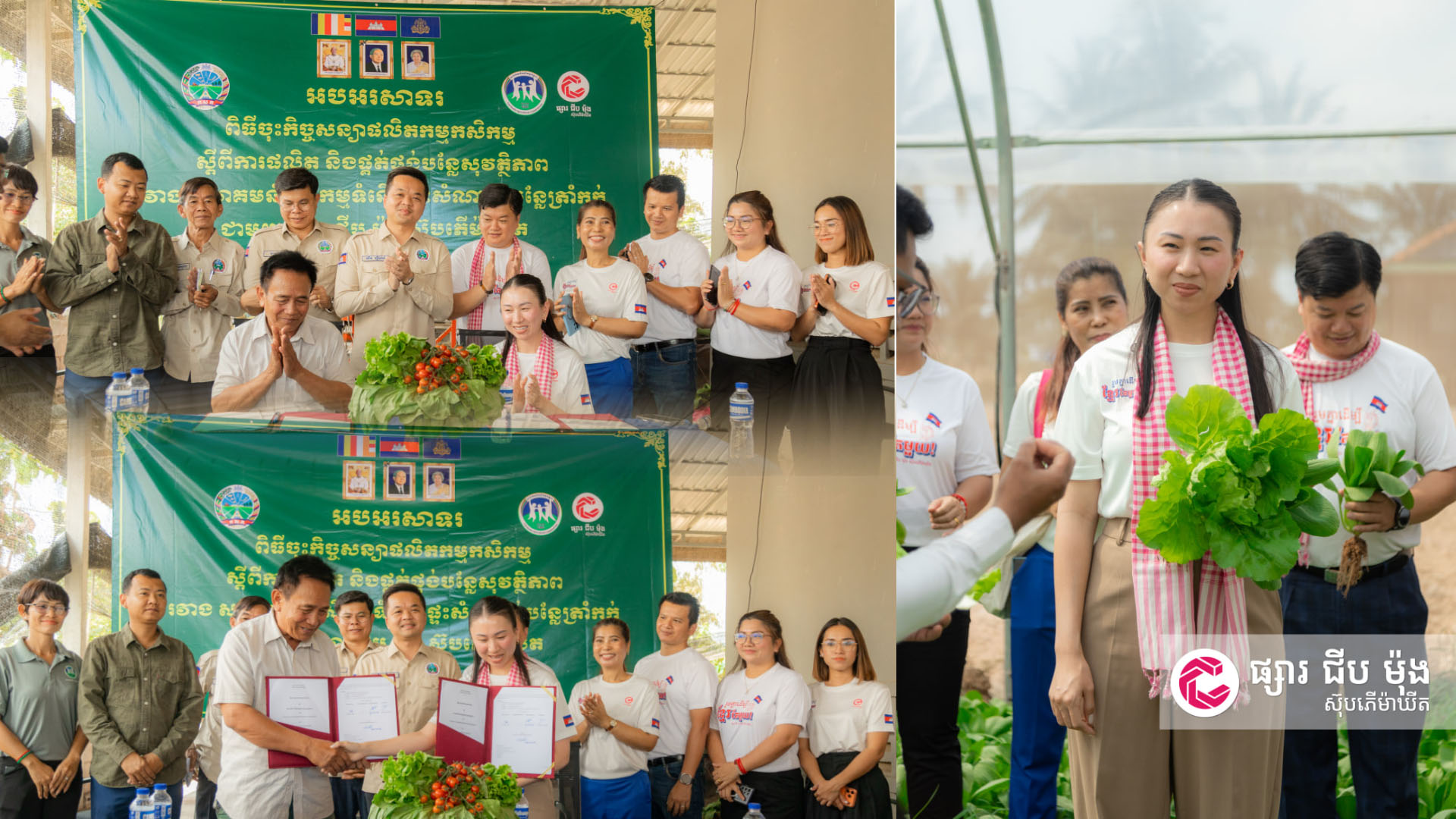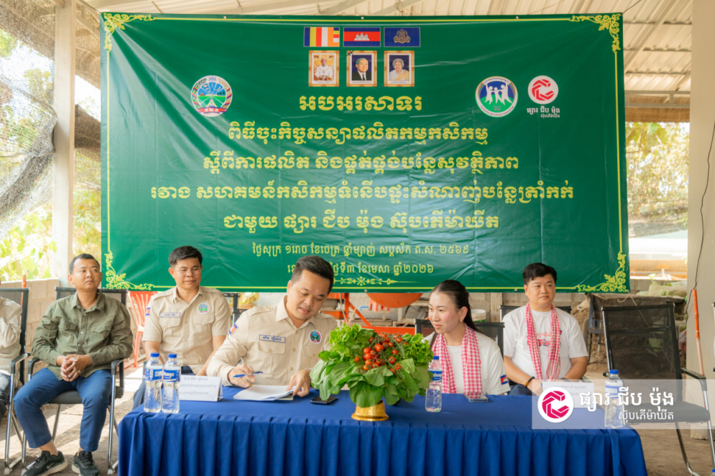 (ភ្នំពេញ)៖ កាលពីព្រឹកថ្ងៃទី ៣ ខែ មេសា ឆ្នាំ ២០២៦ ផ្សារ ជីប ម៉ុង ស៊ុបភើម៉ាឃីត មានកិត្តិយសក្នុងការចាប់ដៃគូសហការជាមួយសហគមន៍កសិកម្មទំនើប ក្រោមអធិបតីភាពរបស់ លោកជំទាវ លី សុខឆេង អគ្គនាយិកា ក្រុមហ៊ុន ជីបម៉ុង រីថែល និង ឯកឧត្តម ឃឹម ហ្វីណង់ អនុរដ្ឋលេខាធិការក្រសួងកសិកម្ម រុក្ខាប្រមាញ់ និងនេសាទ ដើម្បីលើកស្ទួយកសិផលខ្មែរ និងពង្រីកឱកាសទីផ្សារសម្រាប់កសិករខ្មែរ។