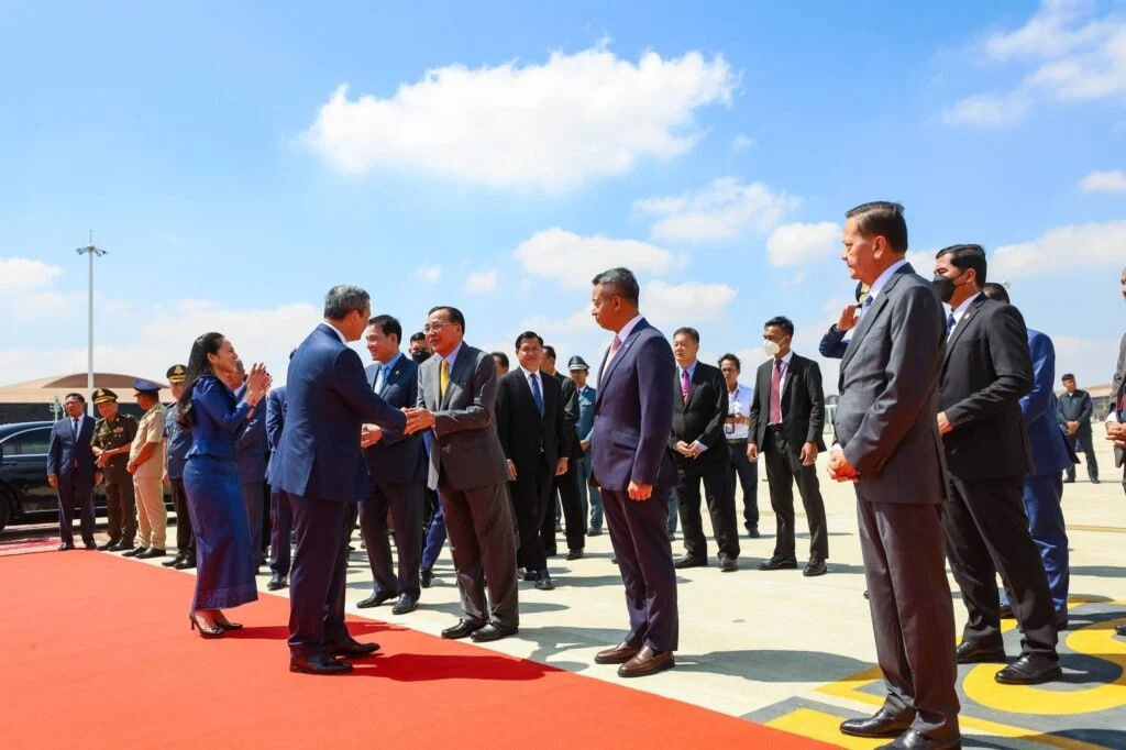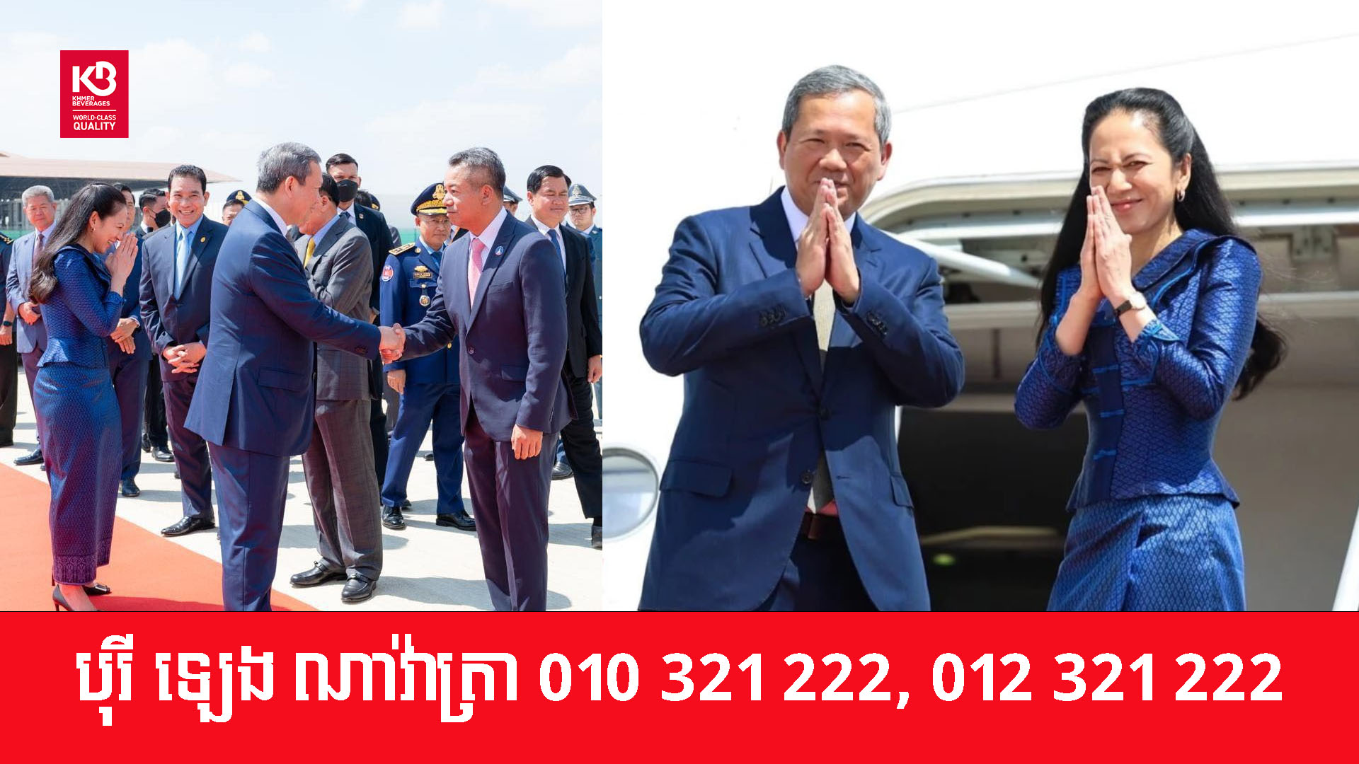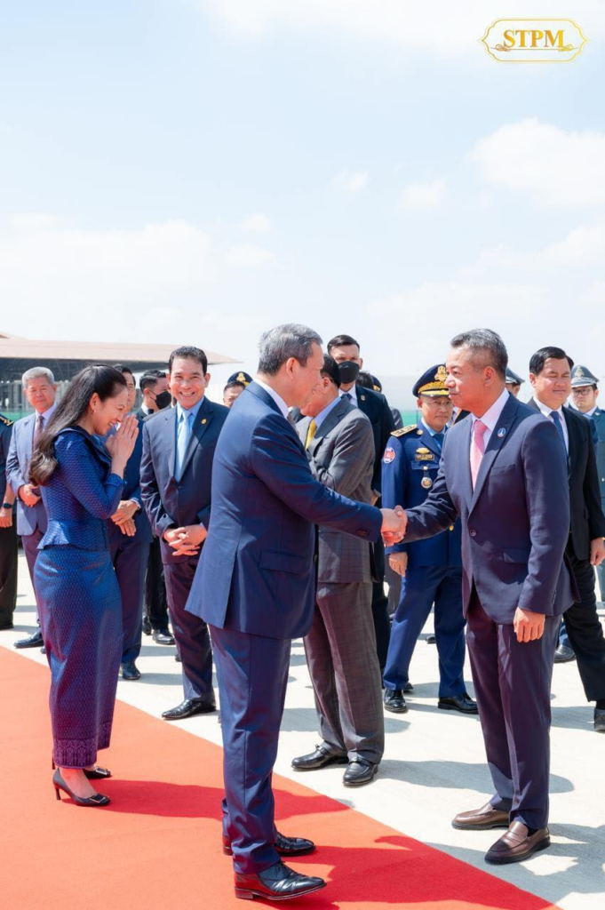 អញ្ជើញអមដំណើរ សម្តេចធិបតីនាយករដ្ឋមន្ត្រី និង លោកជំទាវបណ្ឌិត ពេជ ចន្ទមុន្នី ហ៊ុន ម៉ាណែត រួមមាន លោកប្រាក់ សុខុន ឧបនាយករដ្ឋមន្ត្រី រដ្ឋមន្ត្រីការបរទេស និងសហប្រតិបត្តិការអន្តរជាតិ រួមជាមួយ ឧបនាយករដ្ឋមន្ត្រី រដ្ឋមន្ត្រី និងមន្ត្រីជាន់ខ្ពស់នៃរាជរដ្ឋាភិបាលកម្ពុជា។