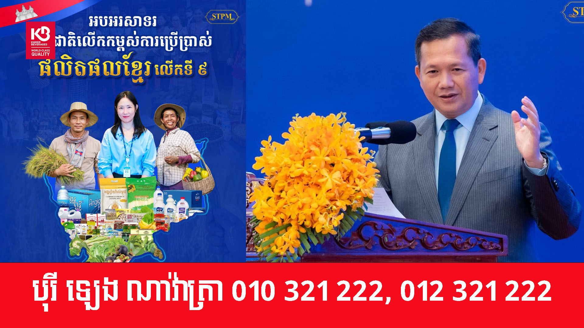 ក្នុងនាមរាជរដ្ឋាភិបាល សម្តេចធិបតី សូមអំពាវនាវឱ្យបងប្អូនប្រជាពលរដ្ឋទាំងអស់ បន្តគាំទ្រផលិតផលខ្មែរ ដោយជឿជាក់លើគុណភាព និងតម្លៃ។ ការជ្រើសរើសនិងគាំទ្ររបស់បងប្អូន គឺជាកម្លាំងដ៏សំខាន់ក្នុងការកសាងសេដ្ឋកិច្ចជាតិឱ្យមានភាពរឹងមាំ និងភាពធន់ចំពោះបញ្ហាប្រឈមគ្រប់ប្រភេទ។ «យើងខិតខំផលិត យើងជួយប្រើប្រាស់ ជាតិយើងនឹងរីកចម្រើន!»។