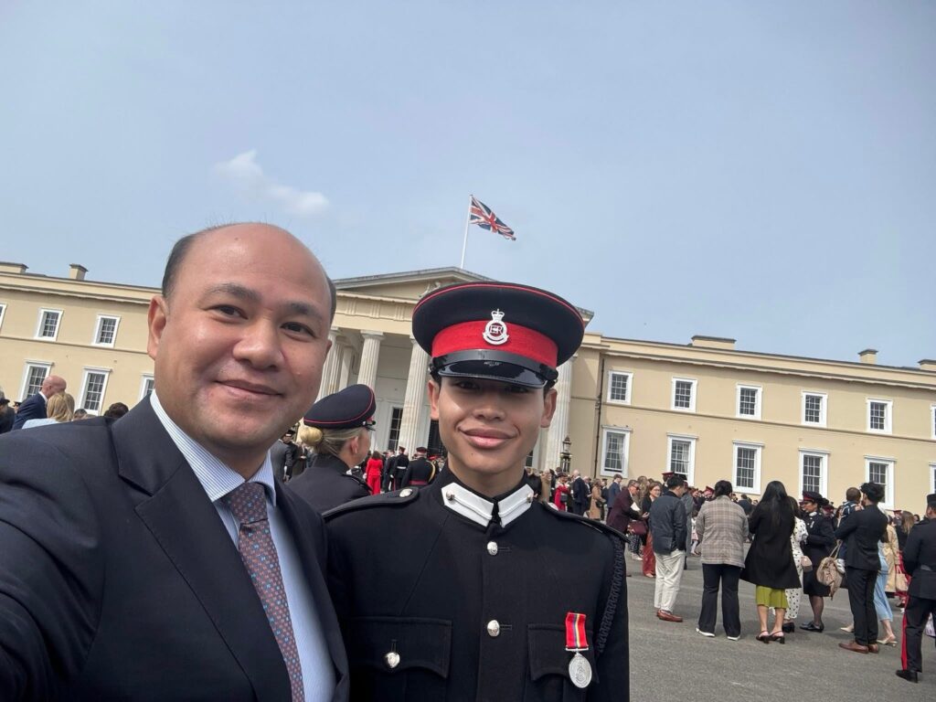 ឧបនាយករដ្ឋមន្ត្រី ហ៊ុន ម៉ានី រដ្ឋមន្ត្រីក្រសួងមុខងារសាធារណៈ កាលពីពេលថ្មីៗនេះ បានអញ្ជើញអបអរសាទរកូនប្រុសបញ្ចប់ការសិក្សាពីរាជបណ្ឌិតសភាយោធាសាន់ហឺស នៅចក្រភពអង់គ្លេស។
