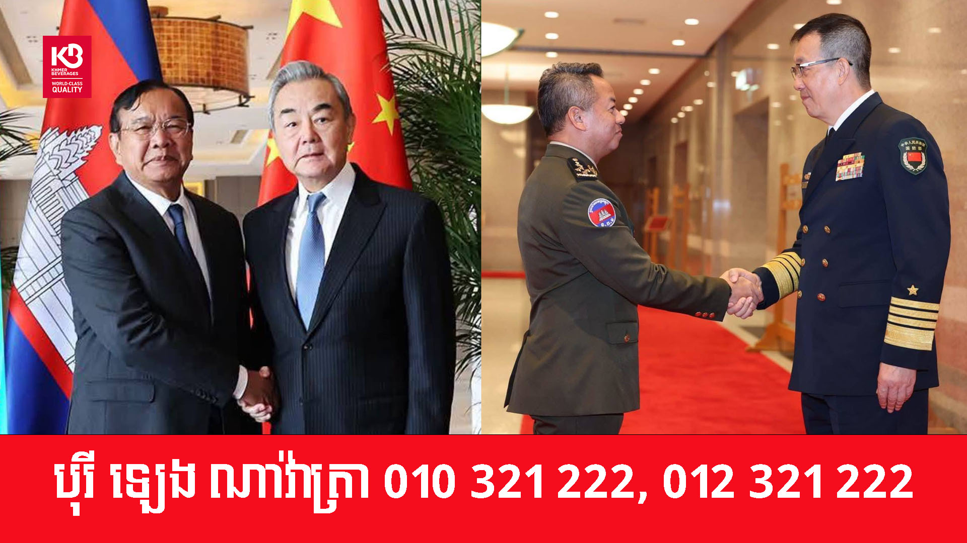 ឯកឧត្តម វ៉ាង យី (Wang Yi) រដ្ឋមន្ត្រីការបរទេសចិន និងឯកឧត្ដម ដុង ជុន (Dong Jun)  រដ្ឋមន្ត្រីការពារជាតិចិន នឹងមានជំនួបជាមួយ ឯកឧត្ដម ប្រាក់ សុខុន រដ្ឋមន្ត្រីការបរទេសកម្ពុជា និងឯកឧត្ដម ទៀ សីហា រដ្ឋមន្ត្រីការពារជាតិកម្ពុជា ក្នុងកិច្ចប្រជុំលើកដំបូង នៃកិច្ចសន្ទនាយុទ្ធសាស្ត្រ “២+២” រវាងរដ្ឋមន្ត្រីការបរទេស និងរដ្ឋមន្ត្រីការពារជាតិ កម្ពុជា-ចិន នៅល្ងាចថ្ងៃទី២២ ខែមេសា ខាងមុខនេះ នៅក្នុងប្រទេសកម្ពុជា ដោយនឹងពិភាក្សាអំពីកិច្ចការសំខាន់មួយចំនួន។