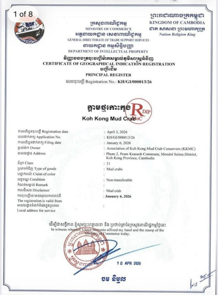 សូមចូលរួមអបអរសាទរដល់អ្នកខេត្ដកោះកុងផង ដោយក្ដាមថ្មខេត្ដកោះកុងត្រូវបានចុះបញ្ជីផលិតផលសម្គាល់ភូមិសាស្រ្តGI ជាផ្លូវការហើយ កាលពីថ្ងៃទី៣ ខែមេសា ឆ្នាំ២០២៦កន្លងទៅថ្មីៗនេះ។