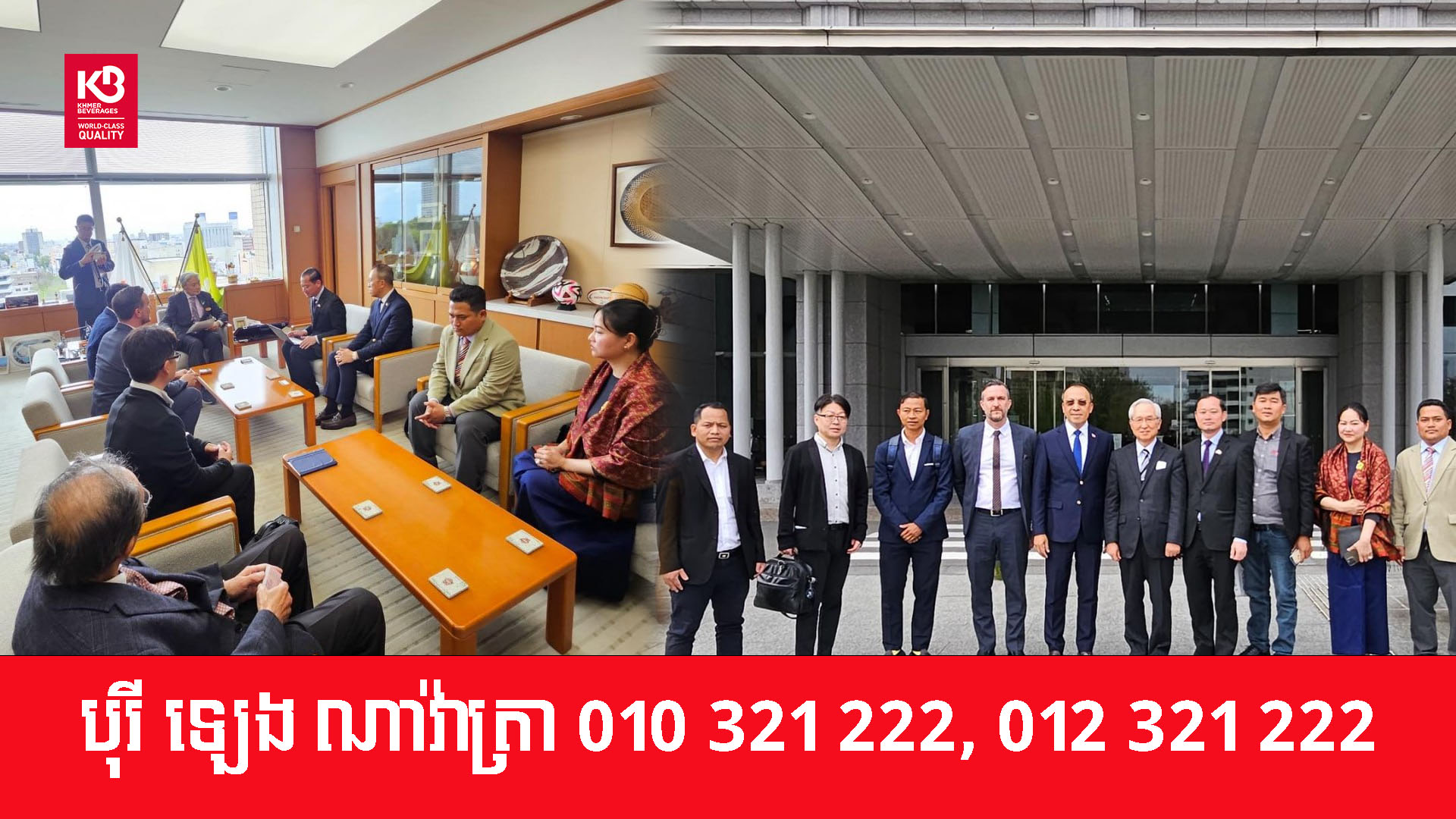 កម្ពុជា-ជប៉ុន បើកកិច្ចពិភាក្សាជំរុញពង្រឹងទំនាក់ទំនងការទូត និងការតភ្ជាប់កិច្ចសហប្រតិបត្តិការនានា សំដៅឈានទៅលើកកម្ពស់វិស័យសេដ្ឋកិច្ច ពាណិជ្ជកម្ម និងទេសចរណ៍ទ្វេភាគីឱ្យកាន់តែប្រសើរ។នេះបើយោងតាមជំនួបពិភាក្សារវាងលោក ស៊ីន សារ៉ាយ អនុព័ន្ធពាណិជ្ជកម្មអមស្ថានឯកអគ្គរាជទូតកម្ពុជាប្រចាំប្រទេសជប៉ុន ជាមួយលោក FUKUDA TOMIKAZU គណៈអភិបាលខេត្តតូឈិហ្គិ និងគណៈប្រតិភូវិស័យឯកជនកម្ពុជា នៅទីស្នាក់ការរដ្ឋាបាលខេត្តតូឈិហ្គិ ខេត្តតូឈិហ្គិ កាលពីពេលថ្មីៗនេះ ។