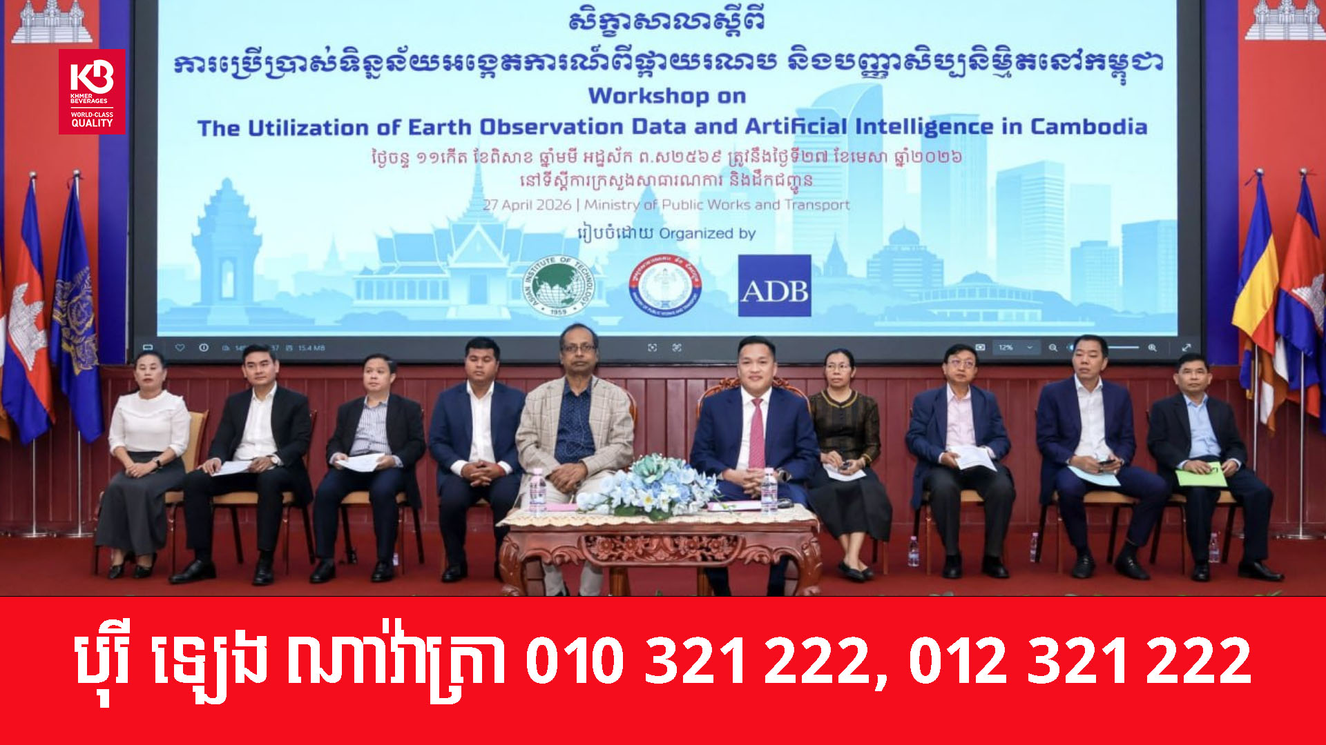ស្ថាប័នជំនាញ បានរួមគ្នារៀបចំសិក្ខាសាលា ដើម្បីជំរុញការប្រើប្រាស់ទិន្នន័យអង្កេតការណ៍ពីផ្កាយរណប និងបញ្ញាសិប្បនិម្មិតនៅកម្ពុជា។សិក្ខាសាលានេះ បានរៀបចំកាលថ្ងៃ ទី២៧ ខែមេសា ឆ្នាំ២០២៦ ឯកឧត្តម ហេង សុធី អគ្គនាយក នៃអគ្គនាយកដ្ឋានដឹកជញ្ជូនផ្លូវទឹក ផ្លូវសមុទ្រ និងកំពង់ផែ ដោយមានសហការរៀបចំដោយក្រសួងសាធារណការ និងដឹកជញ្ជូន វិទ្យាស្ថានបច្ចេកវិទ្យាអាស៊ី (AIT) និងធនាគារអភិវឌ្ឍន៍អាស៊ី (ADB)។