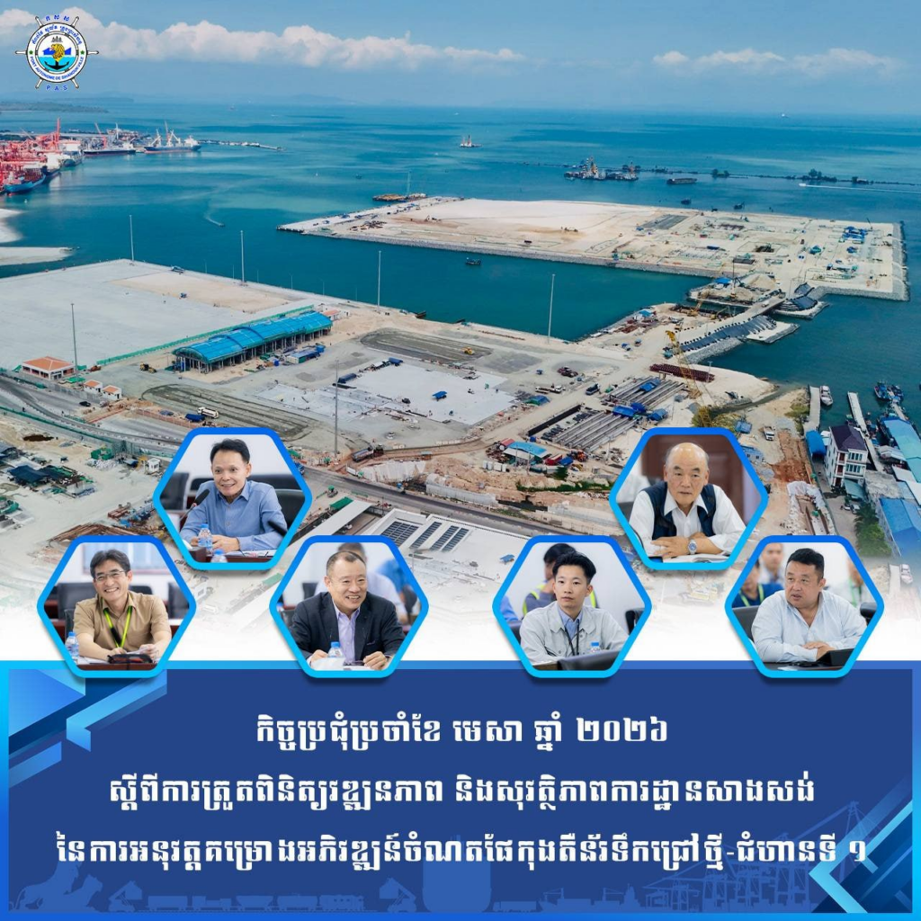 ប្រភពដដែលបានឱ្យដឹងថា នៅកិច្ចប្រជុំប្រចាំខែ មេសា ឆ្នាំ ២០២៦ ស្តីពីការត្រួតពិនិត្យវឌ្ឍនភាព និងសុវត្ថិភាពការដ្ឋានសាងសង់ នៃការអនុវត្តគម្រោងអភិវឌ្ឍន៍ចំណតផែកុងតឺន័រទឹកជ្រៅថ្មី-ជំហានទី ១ លោក ទី សាគុណ អគ្គនាយករង ទទួលបន្ទុកបច្ចេកទេសនៃកំពង់ផែស្វយ័តក្រុងព្រះសីហនុ បានបើកកិច្ចប្រជុំប្រចាំខែ មេសា ឆ្នាំ ២០២៦ ស្តីពីការត្រួតពិនិត្យវឌ្ឍនភាព និងសុវត្ថិភាពការដ្ឋានសាងសង់ នៃការអនុវត្តគម្រោងអភិវឌ្ឍន៍ចំណតផែកុងតឺន័រទឹកជ្រៅថ្មី-ជំហានទី ១ ជាមួយក្រុមហ៊ុនសាងសង់ TOA Corporation និងក្រុមហ៊ុនទីប្រឹក្សាគម្រោង Nippon Koei & Oriental Consultant Global JV។