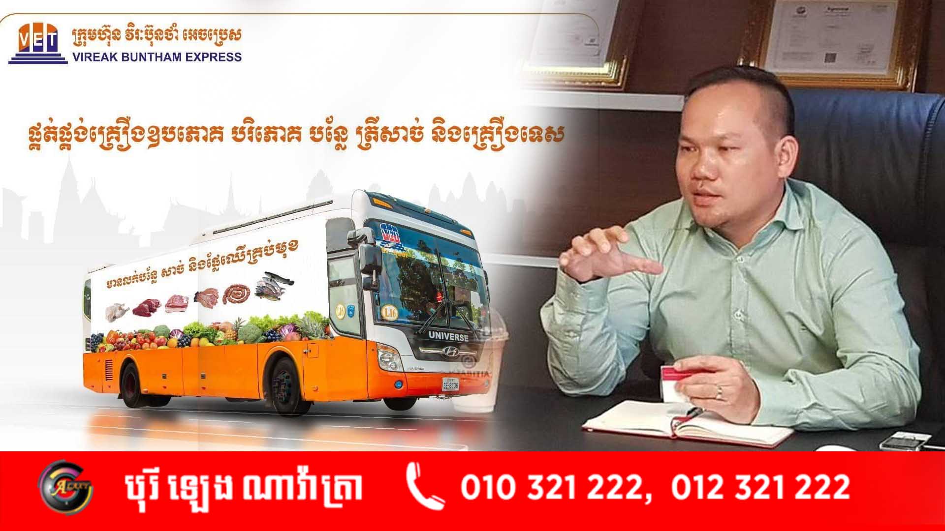 ក្រុមហ៊ុនវីរៈប៊ុនថាំ របស់ឧកញ៉ា សួរ វីរៈ​ ត្រូវបានសាលារាជធានីភ្នំពេញ អនុញ្ញាតឲ្យប្រើប្រាស់រថយន្តដឹកជញ្ជូនរបស់ខ្លួនចំនួន ៦៤គ្រឿង បើកចល័តលក់គ្រឿងឧបភោគបរិភោគ (ដូចផ្សារ Mart) ទូទាំងរាជធានីភ្នំពេញ ដែលជាតំបន់ បិទទ្ទប់ ដែលលក់ជូនបងប្អូនប្រជាពលរដ្ឋក្នុងតម្លៃសមរម្យ។