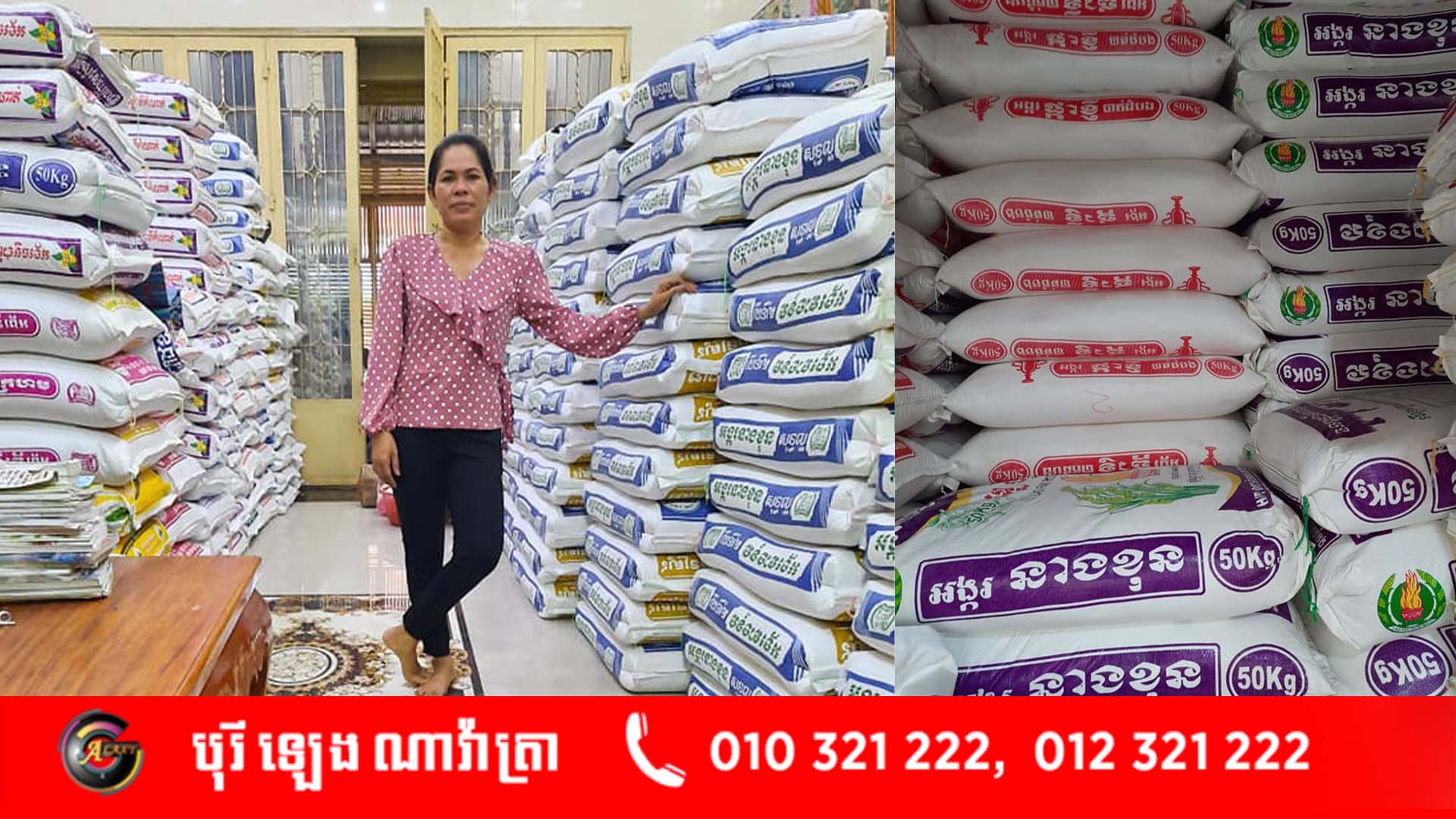 លោកអ្នកនាងអាចបញ្ជាទិញអង្ករគ្រប់ប្រភេទបោះដុំនិងរាយបាននៅតូបលេខ០៦ និង០៧ ឬបងប្អូនដែលនៅគ្រប់ខេត្តក្រុងអាចទំនាក់ទំនងតាមលេខទូរសព្ទ 012599042/077244588។
