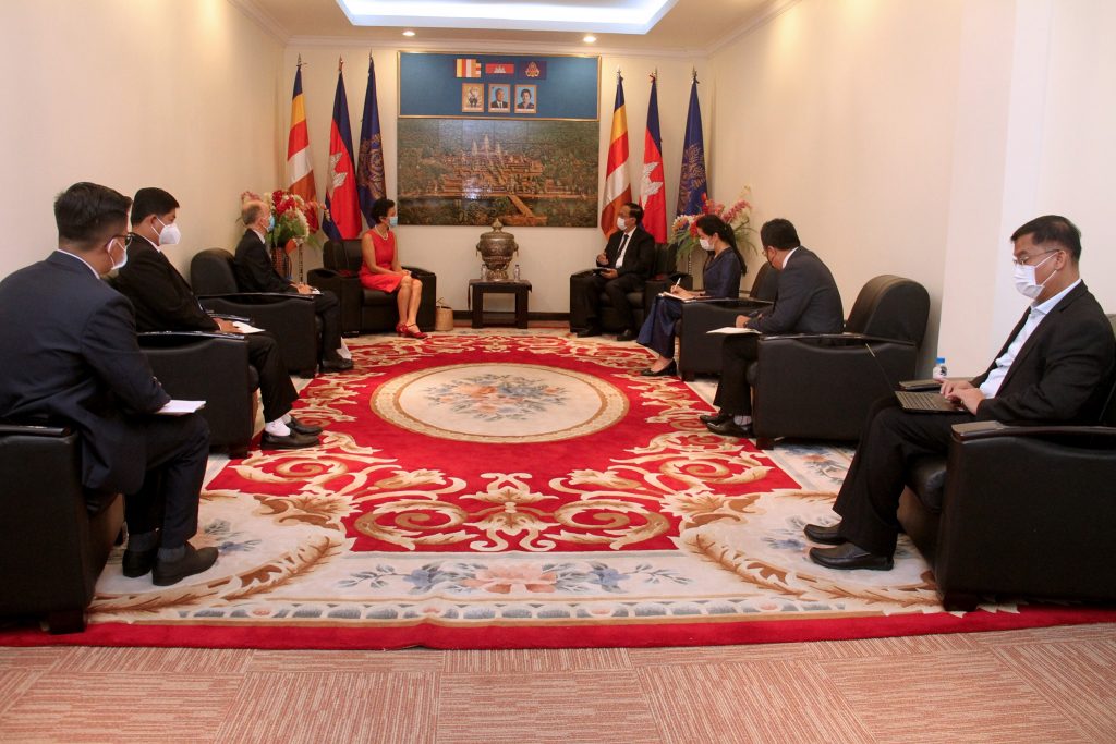 លោកស្រីឯកអគ្គរដ្ឋទូត ក៏បង្ហាញពីសេចក្តីសោមនស្សរីករាយ ចំពោះកិច្ចខិតខំប្រឹងប្រែងរបស់រាជរដ្ឋាភិបាលកម្ពុជា តាមរយៈក្រសួងពាណិជ្ជកម្ម ក្នុងការធ្វើពិពិធកម្មសេដ្ឋកិច្ច កំណែទម្រង់ច្បាប់ បទបញ្ញត្តិ និងការកសាងស្ថាប័ននាពេលកន្លងមក។