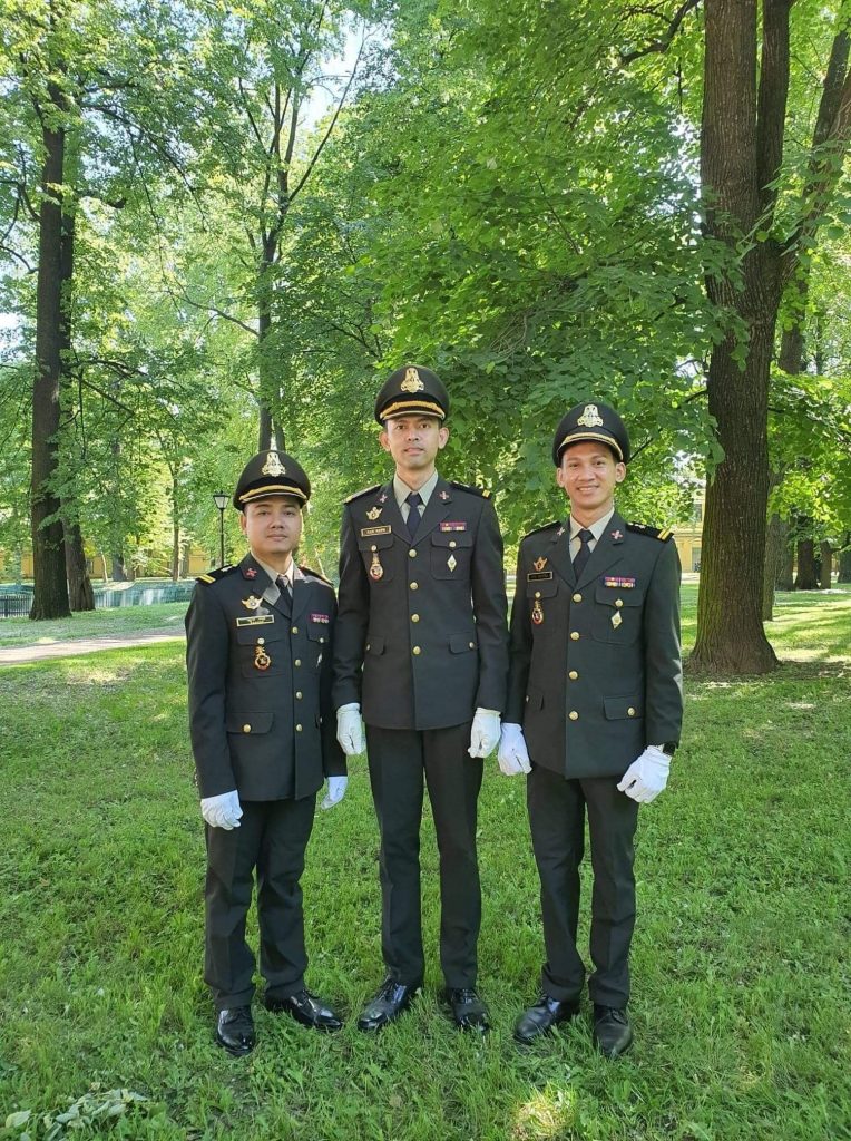 នាយទាហានកម្ពុជា ចំនួន៣រូប ១ អនុសេនីយ៍ទោ អ៊ាន ហ្សាតូ ២ អនុសេនីយ៍ទោ ស្ងួន ភក្ដី ៣ អនុសេនីយ៍ទោ សេក មិនា ដែលបានបញ្ចប់ការសិក្សាថ្នាក់ Specialist degree ជំនាញវេជ្ជសាស្ត្រ ដោយជោគជ័យពីបណ្ឌិត្យសភាវេជ្ជសាស្រ្តយោធា ទីក្រុងSaint Petersburg សហព័ន្ធរុស្ស៊ី។