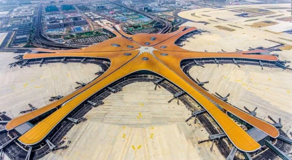 កាលពី​ឆ្នាំ ២០១៩ ប្រទេស​ចិន​បាន​សម្ពោធ​ប្រលានយន្តហោះ​ថ្មី​មួយ ដែល​មាន​សណ្ឋាន​ជា​រាង​ផ្កាយ​សមុទ្រ ហើយ​វា​បាន​ចំណាយ​ពេល​ប្រមាណ ៥ ឆ្នាំ​ដើម្បី​បញ្ចប់​ការសាងសង់​ ដោយ​ចាយ​អស់​ទឹក​ប្រាក់​ប្រមាណ ១១,៤ ពាន់​លាន​ដុល្លារ​ និង​ជា​ព្រលានយន្តហោះ​អន្តរជាតិ​ទី ២ នៅ​ទីក្រុង​ប៉េកាំង បន្ទាប់ពី​ព្រលានយន្តហោះ Beijing Capital International Airport។