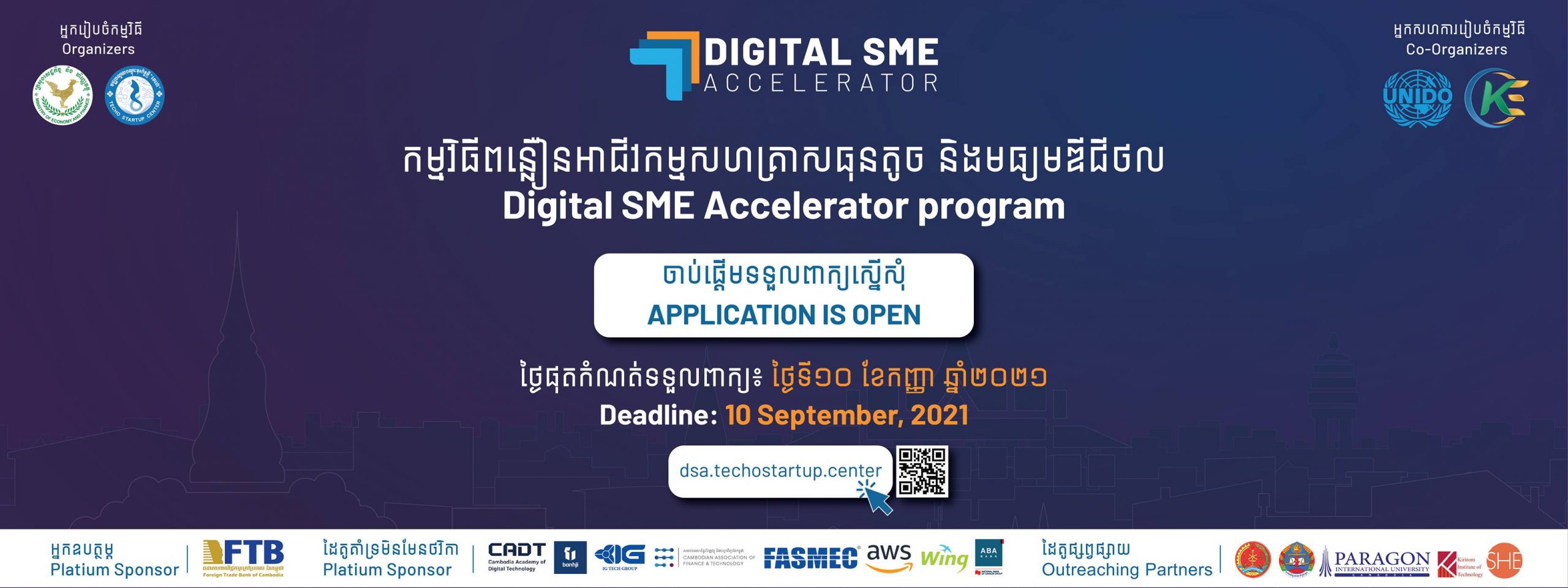 ព័ត៌មានបន្ថែមសូមចូលទៅកាន់៖ https://dsa.techostartup.center/។ ការដាក់ពាក្យចាប់ផ្តើមទទួលចាប់ពីថ្ងៃនេះ រហូតដល់ថ្ងៃទី១០ ខែកញ្ញា ឆ្នាំ២០២១ ម៉ោង១១៖៥៩នាទីយប់។