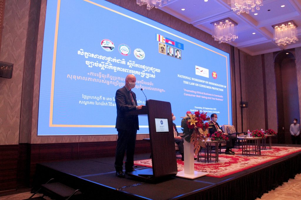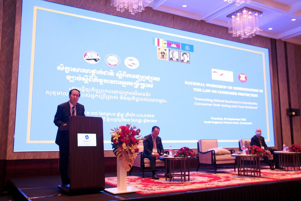 សិក្ខាសាលាថ្នាក់ជាតិស្តីពីការផ្សព្វផ្សាយច្បាប់ស្តីពីកិច្ចការពារអ្នកប្រើប្រាស់ ក្រោមប្រធានបទ «ការធ្វើធុរកិច្ចប្រកបដោយក្រមសីលធម៌៖ សុខុមាលភាពរបស់អតិថិជន និងធុរកិច្ចរបស់លោកអ្នក» ត្រូវបានរៀបចំឡើងនៅថ្ងៃទី២៣ កញ្ញាម្សិលមិញ ក្នុងគោលបំណងចែករំលែកក្រមសីលធម៌ធុរកិច្ចតាមប្រព័ន្ធអនឡាញសម្រាប់អាស៊ាន ដែលបានបង្កើតឡើងដើម្បីលើកទឹកចិត្តដល់ការអនុវត្តធុរកិច្ចដោយត្រឹមត្រូវ នៅក្នុងបរិយាកាសពាណិជ្ជកម្មអេឡិចត្រូនិកដែលកំពុងវិវត្ត។
