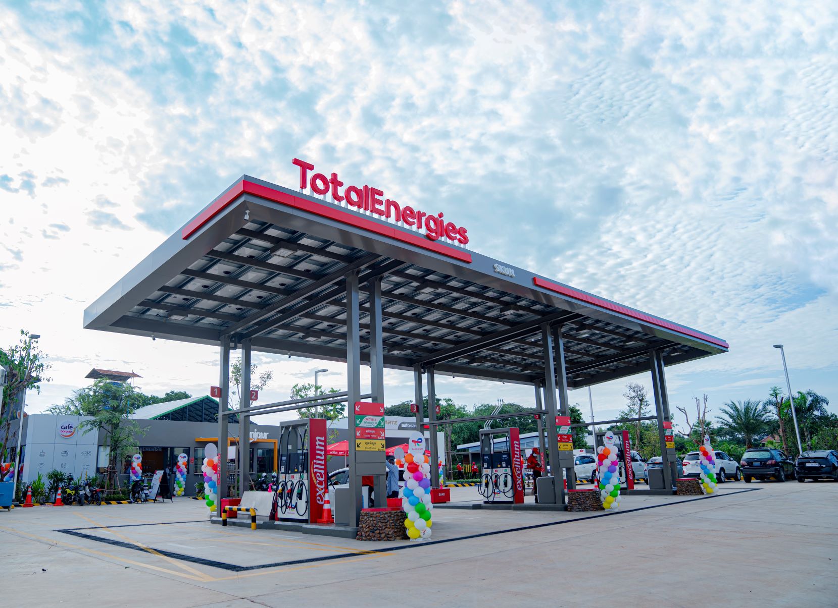 ស្ថានីយប្រេងឥន្ធនៈថ្មីរបស់ TotalEnergies ផ្តល់ជូនដល់អតិថិជននូវហាងទំនិញគ្រប់មុខ សេវាកម្ម និងឥន្ធនៈគ្រប់ប្រភេទដែលមានគុណភាពខ្ពស់ ខណៈដែលសេវាកម្មទាំងនោះរួមាន Café Bonjour និង Quartz Auto Care ជាដើម។