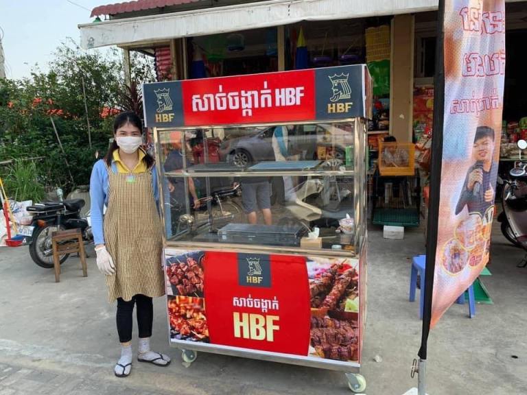 ម្ចាស់សាច់ចង្កាក់ HBF រូបនេះ ក៏បាន ​​ណែនាំអោយតំណាងសាខាប្រេនសាច់ចង្កាក់HBF ដាក់លក់នៅតាមតូបHBFនៅទូទាំងប្រទេស ដើម្បីទទួលបានសុខភាពល្អទាំងអស់គ្នា។​ លោកថា​ មិនមែនពាក់ថង់នោះទេ។