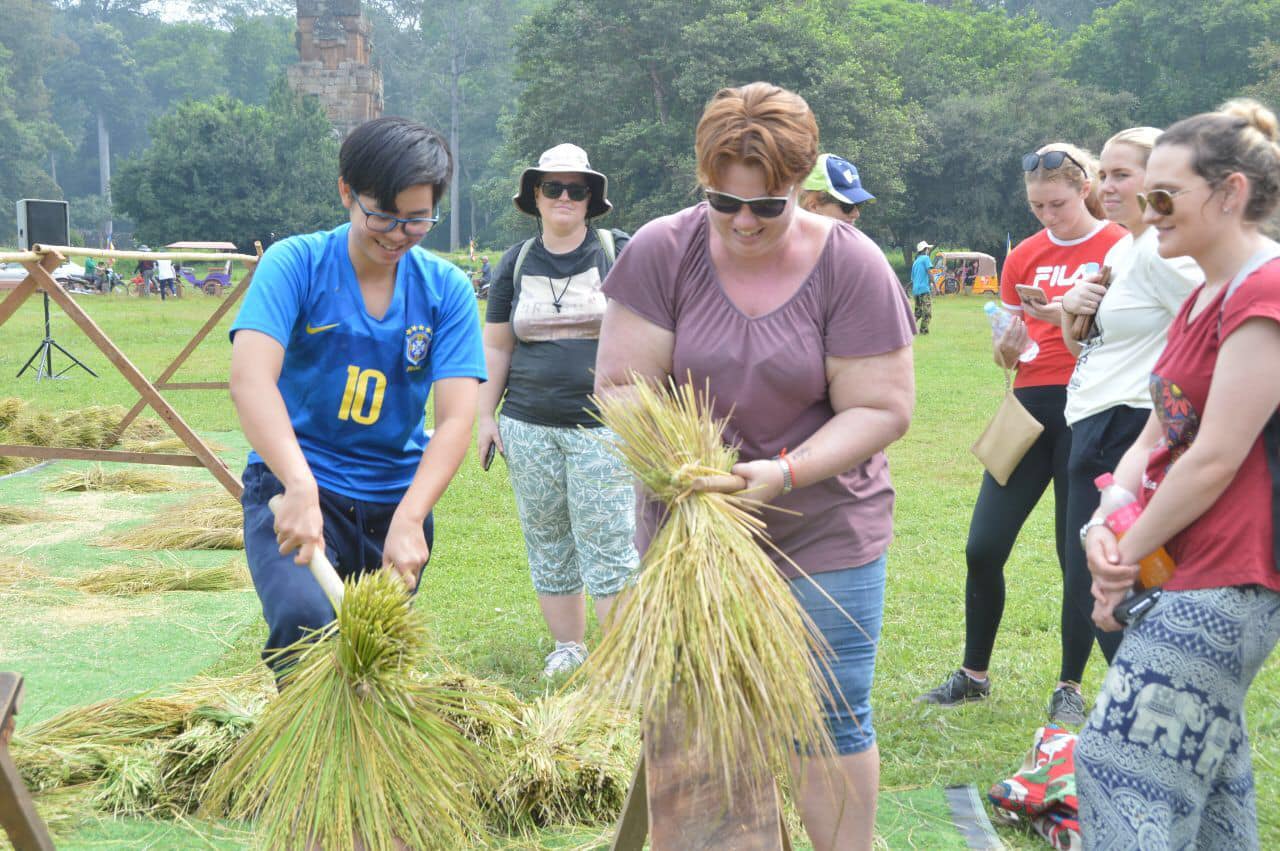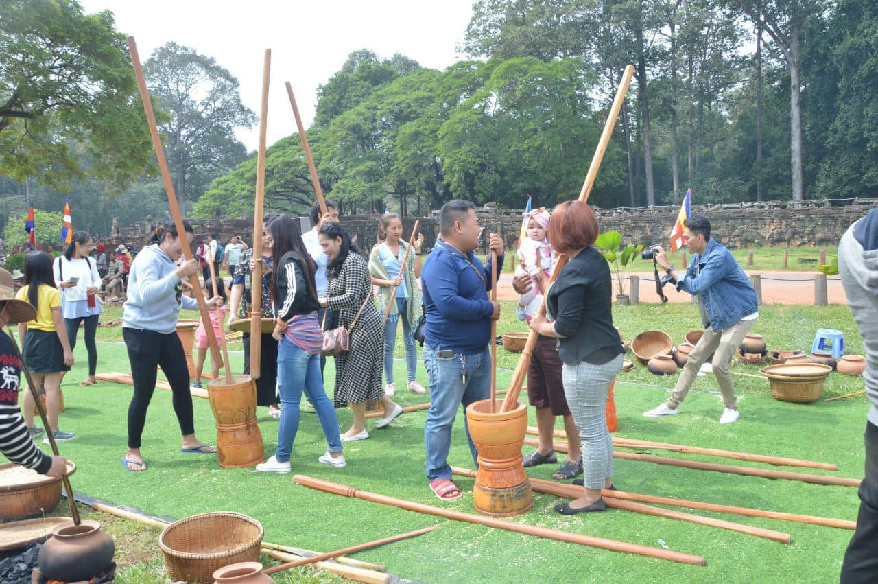 ក្រៅតែបងប្អូនជាភ្ញៀវជាតិអញ្ជើញមកចូលរួមទស្សនាព្រះរាជពិធីបុណ្យអុំទូក បណ្ដែតប្រទីប និងសំពះព្រះខែ អកអំបុក នៅក្នុងទីរួមខេត្តសៀមរាបដូចរាល់ឆ្នាំ នៅឯរមណីយដ្ឋានអង្គរ អាជ្ញាធរជាតិអប្សរាក៏បានរៀបចំពិធីទទួលទានអំបុកការពារជាតិ សាសនា ព្រះមហាក្សត្រ ស្របនឹងការប្រារព្វពិធីបុណ្យឯករាជ្យជាតិលើកទី៦៦ ដោយមានការដាក់តាំងបង្ហាញឧបករណ៍បុរាណខ្មែរប្រើប្រាស់ក្នុងជីវភាពប្រចាំថ្ងៃ និងការបង្កើតសកម្មភាពជាក់ស្តែងក្នុងការច្រូតកាត់ស្រូវ បោកបែនស្រូវ លីងស្រូវ និងដាល់អំបុក។