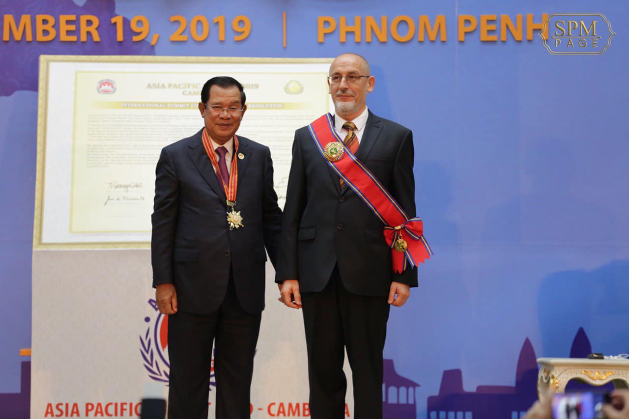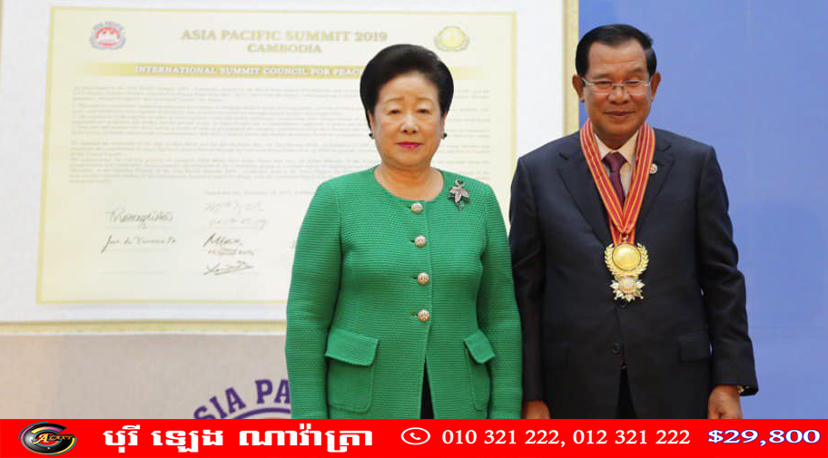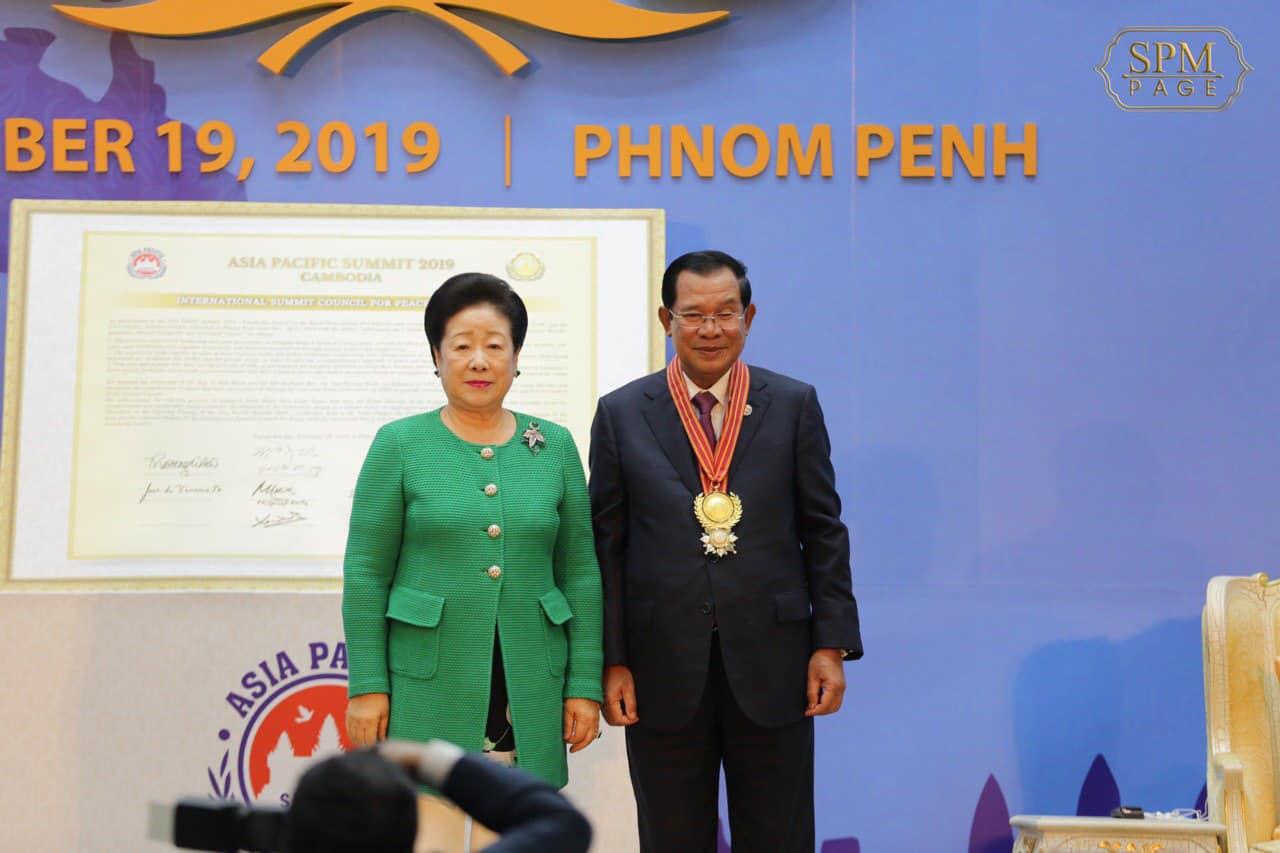 នៅព្រឹកថ្ងៃទី១៩ ខែ វិច្ឆិកា ឆ្នាំ២០១៩នេះ ក្រោយពីបញ្ចប់នូវពិធីបើក “កិច្ចប្រជុំកំពូលអាស៊ីប៉ាស៊ីហ្វិកលើកទី២” ដែលកម្ពុជាទទួលធ្វើជាម្ចាស់ផ្ទះ នៅវិមានសន្តិភាពរួចហើយ សម្តេចអគ្គមហាសេនាបតីតេជោ ហ៊ុន សែន នាយករដ្ឋមន្ត្រីនៃព្រះរាជាណាចក្រកម្ពុជា បានអញ្ជើញឡើងទទួលពានរង្វាន់ «ភាពជាអ្នកដឹកនាំ និង អភិបាលកិច្ចល្អ» ដែលប្រគល់ដោយ លោកជំទាវ ហាក់ ចា ហាន់ មូន (Hak Ja Han Moon) សហស្ថាបនិកសហព័ន្ធសន្តិភាពសកល។