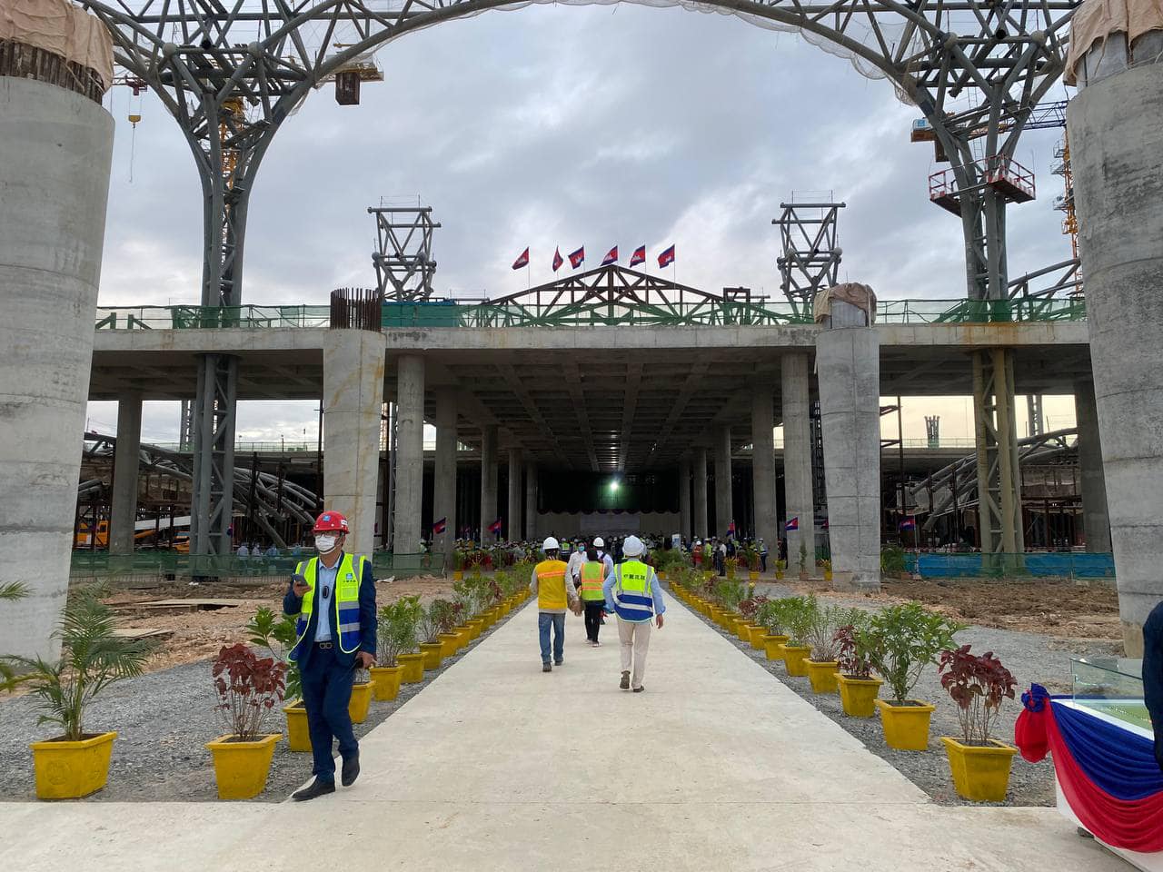 បើតាមអ្នកឧកញ៉ា ពុង ឃាវសែ អគ្គនាយកក្រុមហ៊ុន OCIC បច្ចុប្បន្នក្នុងគម្រោងព្រលានកំពុងមានការសាងសង់សំណងហេដ្ឋារចនាសម្ព័ន្ធនានារួមមាន៖