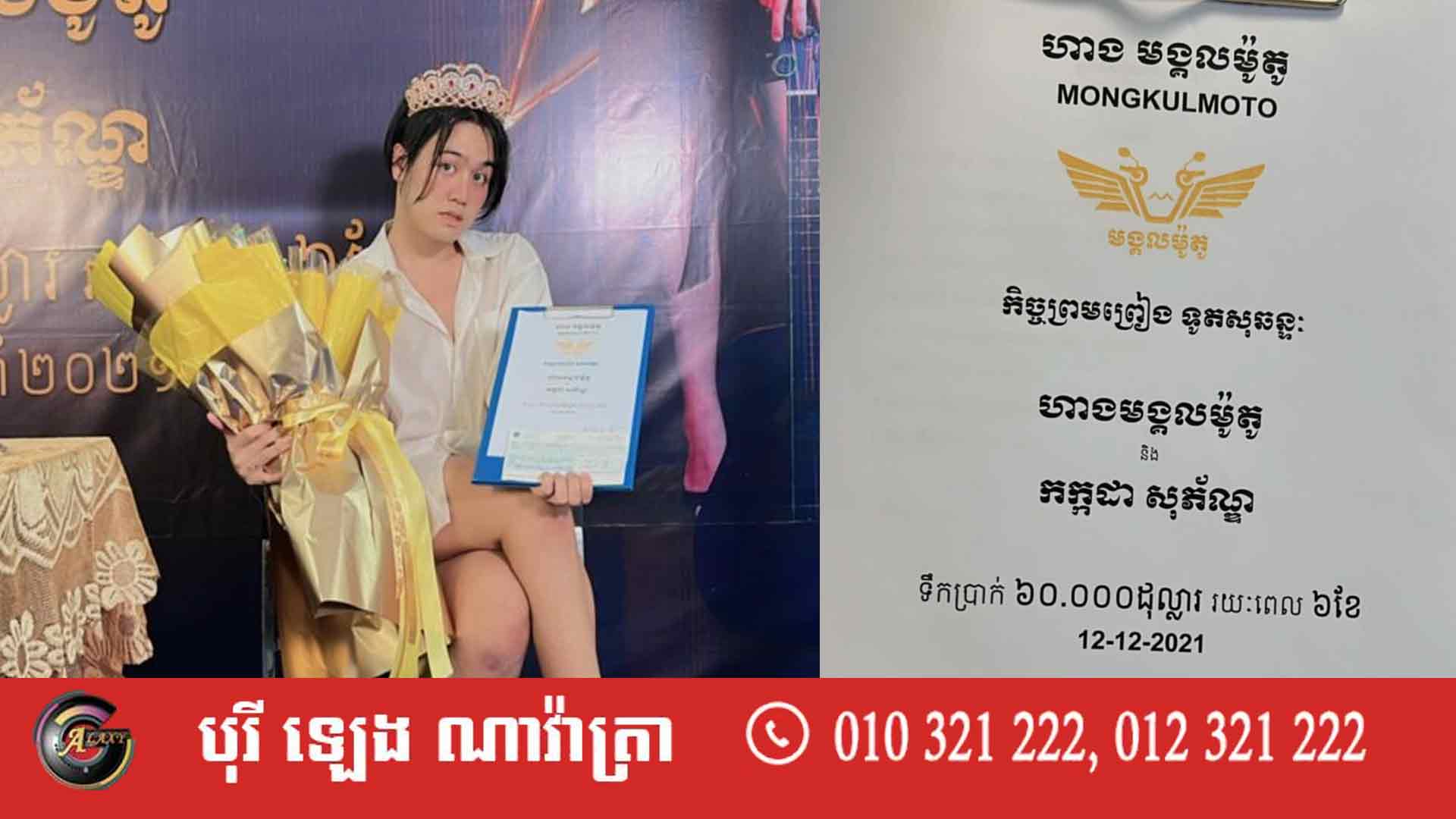 អតីតភិក្ខុ កក្កដា សុភ័ណ្ឌបានបង្ហាញមូលលប្បទានប័ត្រដែលទទួលបានពីហាងមង្គលម៉ូតូ ដោយរៀបរាប់ពីការទទួលបានការងារថ្មីជាទូតសុច្ឆន្ទៈនៅហាងម៉ូតូនេះ។