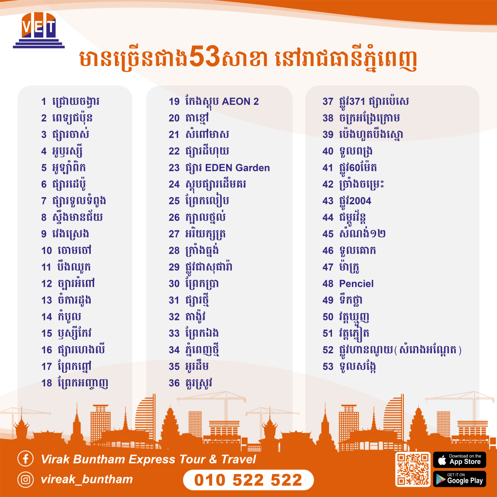ក្រុមហ៊ុនវិរៈ ប៊ុនថាំ បានពង្រីកសាខានៅក្រុងភ្នំពេញមានជាង ៥៣ កន្លែង ដែលផ្តល់សេវាកម្មកាន់តែកៀកលំនៅដ្ឋានរបស់អតិថិជន។