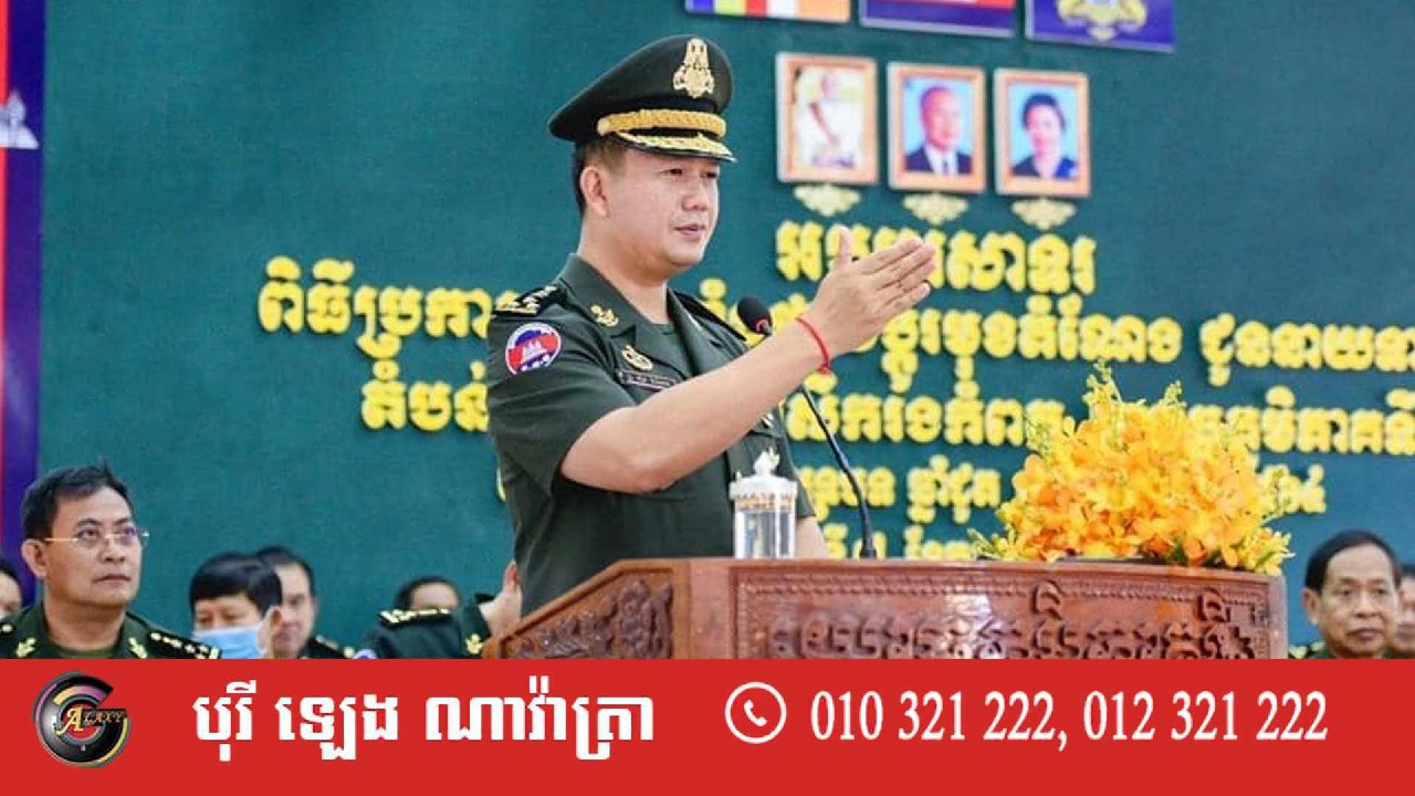 លោក ហ៊ុន ម៉ាណែត អគ្គមេបញ្ជាការរង នៃកងយោធពលខេមរភូមិន្ទ មេបញ្ជាការកងទ័ពជើងគោក ថ្លែងអះអាងបែបនេះក្នុងពិធីបិទវគ្គហ្វឹកហ្វឺនជំនាញយោធា នៅសាលាហ្វឹកហ្វឺនទ័ពពិសេសតេជោសែន ឱរ៉ាល់ នៅខេត្តកំពង់ស្ពឺ នាព្រឹកថ្ងៃទី៣ មករានេះ។