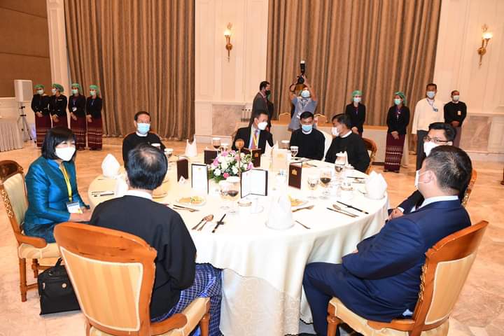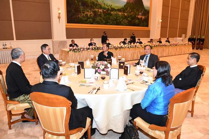 ក្រោយជំនួបជាមួយ សម្តេច ហ៊ុន សែន នៅរាត្រីថ្ងៃទី៧មករា ឆ្នាំ ២០២២ នាយឧត្តមសេនីយ៍ ម៉ីង អ៊ុងឡាំង ប្រធានក្រុមប្រឹក្សារដ្ឋបាលរដ្ឋមីយ៉ាន់ម៉ា បានប្រារព្វពិធីលៀងសាយភោជន៍ជាមហាកិត្តិយសដ៏ខ្ពង់ខ្ពស់បំផុត ជូនសម្តេច ហ៊ុន សែន នាយករដ្ឋមន្រ្តីកម្ពុជា និងគណៈប្រតិភូជាន់ខ្ពស់រាជរដ្ឋាភិបាល ដែលបានបំពេញទស្សនកិច្ចការងារ នៅរដ្ឋធានីណៃពិដោរ ប្រទេសមីយ៉ាន់ម៉ា។