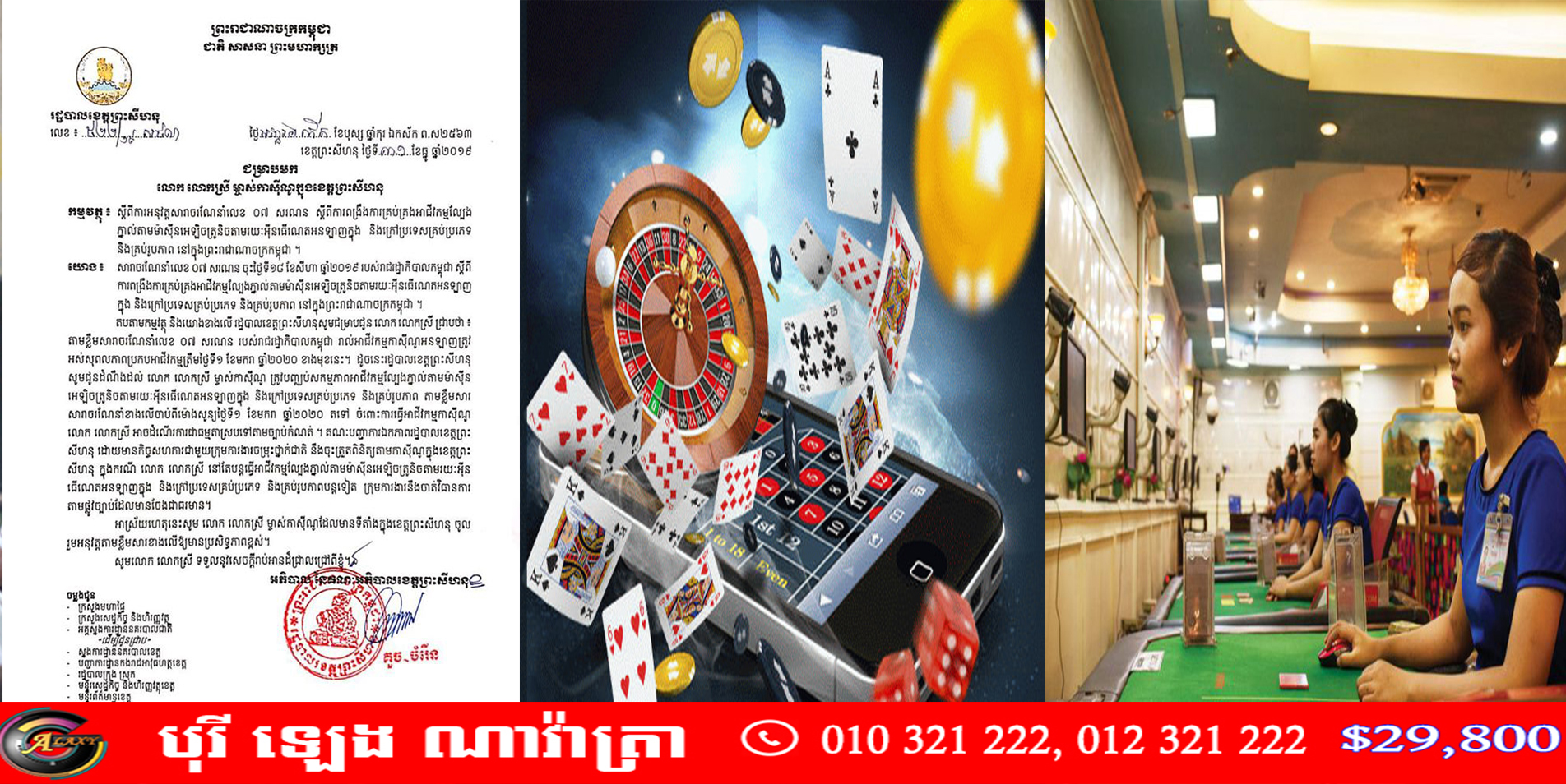 អាជ្ញាធរខេត្តព្រះសីហនុព្រមានចាត់វិធានក្តៅចំពោះការម្ចាស់ Casino Online ខុសច្បាប់ដែលនៅតែបន្តសកម្មភាពខុសច្បាប់នៅខេត្តព្រះសីហនុតទៅទៀត។ តាមខ្លឹមសារាចរណែនាំលេខ ០៧ សរណន របស់រាជរដ្ឋាភិបាលកម្ពុជា រាល់អាជីវកម្មកាស៊ីណូអនឡាញត្រូវ អស់សុពលភាពប្រកបអាជីវកម្មត្រឹមថ្ងៃទី១ ខែមករា ឆ្នាំ២០២០ តទៅ។ ដូច្នេះរដ្ឋបាលខេត្តព្រះសីហនុ បានជូនដំណឹងដល់ លោក លោកស្រី ម្ចាស់កាស៊ីណូ ត្រូវបញ្ឈប់សកម្មភាពអាជីវកម្មល្បែងភ្នាល់តាមម៉ាស៊ីនអេឡិចត្រូនិចតាមរយៈអ៊ីនធើណេតអនឡាញក្នុង និងក្រៅប្រទេសគ្រប់ប្រភេទ និងគ្រប់រូបភាព តាមខ្លឹមសារ សារាចរណែនាំខាងលើចាប់ពីម៉ោងសូន្យថ្ងៃទី១ ខែមករា ឆ្នាំ២០២០ តទៅ ចំពោះការធ្វើអាជីវកម្មកាស៊ីណូ លោក លោកស្រី អាចដំណើរការជាធម្មតា ស្របទៅតាមច្បាប់កំណត់ ។