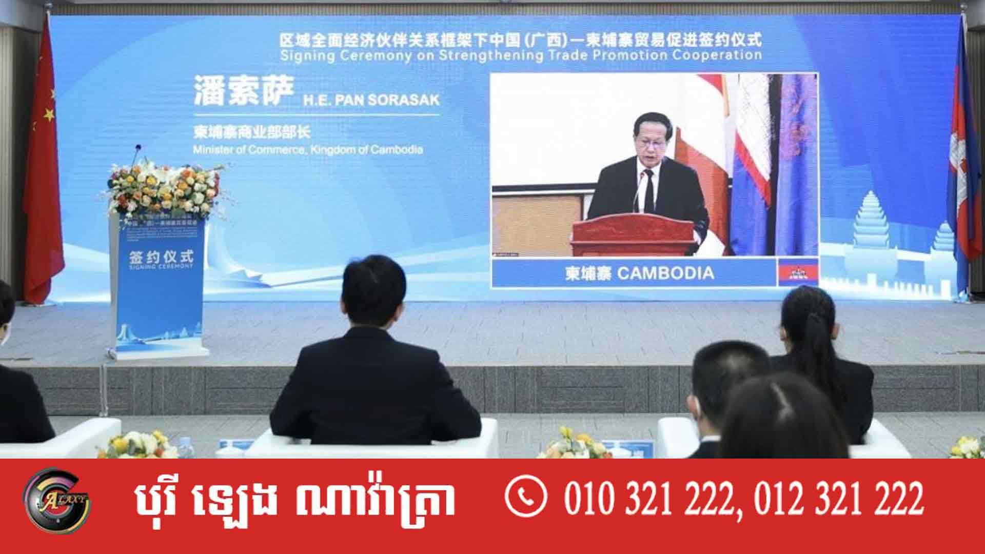 ថ្លែងក្នុងពិធីចុះហត្ថលេខាស្តីពីកិច្ចសហប្រតិបត្តិការជំរុញពាណិជ្ជកម្ម រវាងអគ្គនាយកដ្ឋានជំរុញពាណិជ្ជកម្ម នៃក្រសួងពាណិជ្ជកម្ម និងមន្ទីរពាណិជ្ជកម្មនៃតំបន់ស្វយ័តជនជាតិជាំងក្វាងស៊ី នៃសាធារណរដ្ឋប្រជាមានិតចិនលោកប៉ាន សូរស័ក្តិ រដ្ឋមន្រ្តីក្រសួងពាណិជ្ជកម្មបានបញ្ជាក់ថា តាមរយៈកិច្ចសហការបានធ្វើឲ្យទំនាក់ទំនងពាណិជ្ជកម្មរវាងចិននិងកម្ពុជា បានកើនឡើងយ៉ាងគំហុកក្នុងរយៈកាលចុងក្រោយនេះ។ ជាក់ស្តែងនៅឆ្នាំ២០២១ ទំហំពាណិជ្ជកម្មទ្វេភាគីរវាងកម្ពុជា និងចិនសម្រេចបាន ១១.១៩ ពាន់លានដុល្លារអាមេរិក កើនឡើងប្រមាណ ៣៨% បើធៀបនឹងឆ្នាំ ២០២០។