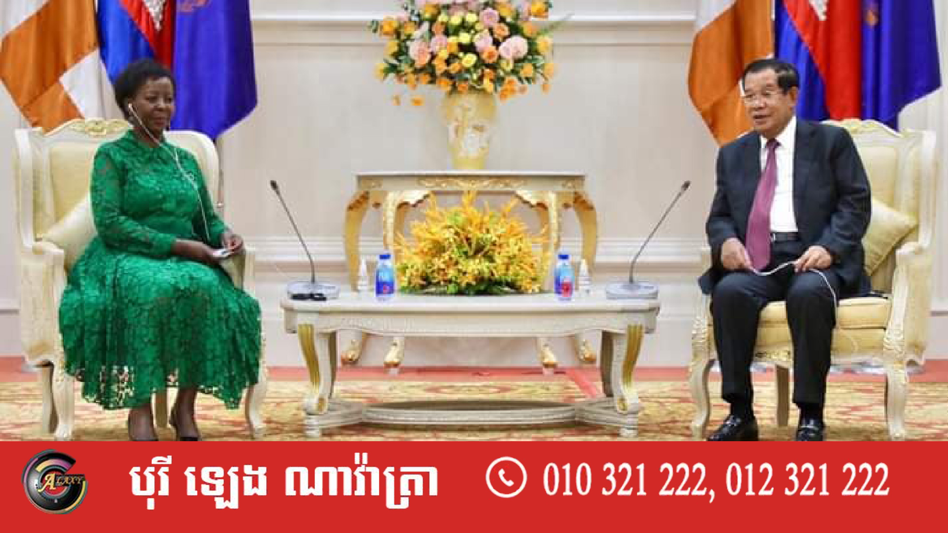 សម្ដេចតេជោ ហ៊ុន សែន នាយករដ្ឋមន្ត្រីនៃកម្ពុជា បានជួបពិភាក្សាការងារជាមួយលោកជំទាវ ល្វីស មូស៊ីគីវ៉ាបូ អគ្គលេខាធិការ អង្គការអន្តរជាតិ ស្រង់គោហ្វីនី នាវិមានសន្តិភាព នៅថ្ងៃទី ២៩ ខែមីនា ឆ្នាំ២០២២នេះ។
