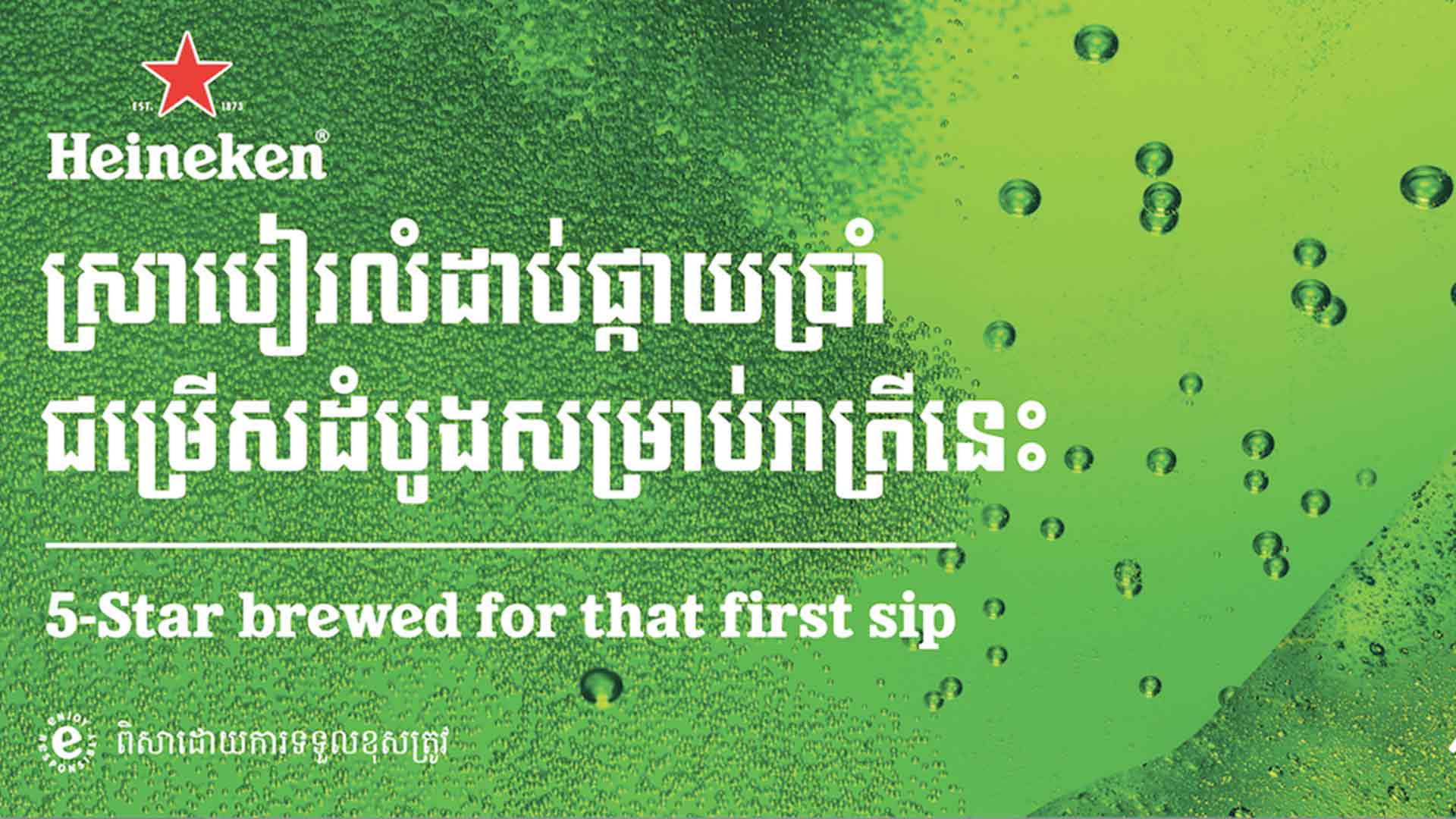 នៅខែមេសានេះ ស្រាបៀរ Heineken® សូមអញ្ជើញ ប្រជាជនកម្ពុជា មកដកពិសោធន៍ធាតុផ្សំស្រាបៀរលំដាប់ផ្កាយ៥របស់ខ្លួន ដែលនាំមកនូវរសជាតិ ប្លែក និងស្រស់ស្រាយ បែបស្រាលស្រទន់។ លោកអ្នកមួយចំនួននឹងមានឱកាសទៅលេងទឹកដីកំណើតរបស់ស្រាបៀរ Heineken® និងភ្លក់ស្រាបៀរ Heineken® ប្រចាំស្រុក នៅទីក្រុងអាមស្ទឺដាមផងដែរ។