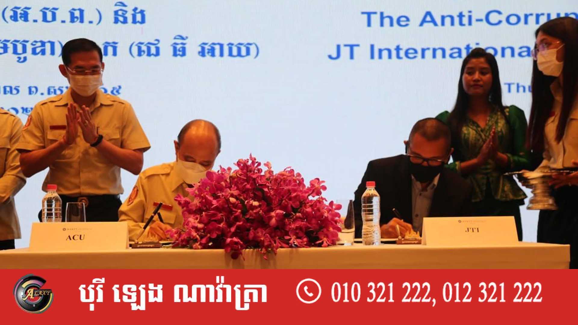 ដើម្បីចូលរួមប្រយុទ្ធប្រឆាំងអំពើពុករលួយ និងលើកកម្ពស់ភាពស្អាតស្អំនៅក្នុងវិស័យឯកជន ក្រុមហ៊ុនជប៉ុន ដែលមានទីស្នាក់ការនៅប្រទេសស្វីស និងមានបុគ្គលិកជិត ៥០០នាក់នៅកម្ពុជា JT International Cambodia Co., Ltd ហៅកាត់ថា JTI បានចុះហត្ថលេខាលើអនុស្សារណៈយោគយល់គ្នា MoU ជាមួយអង្គភាពប្រឆាំងអំពើពុករលួយ ACU កាលពីថ្ងៃទី២១ ខែមេសា ឆ្នាំ២០២២។