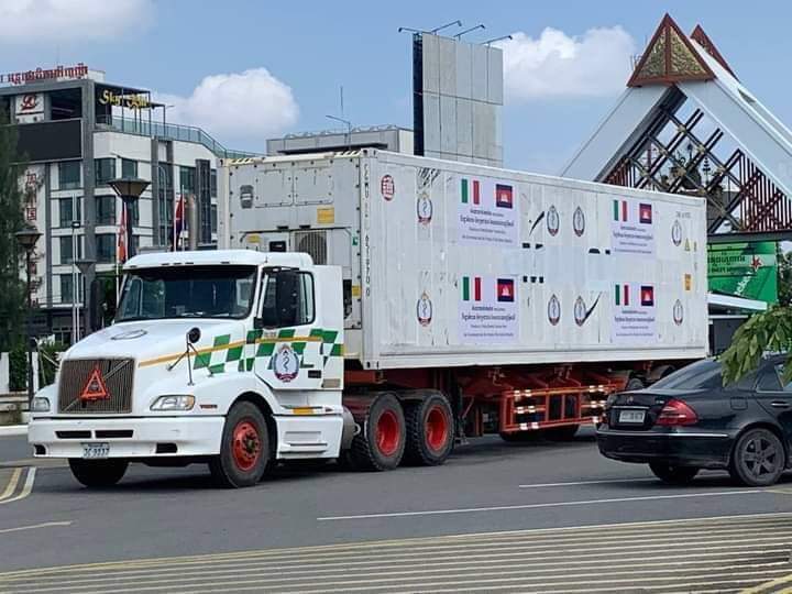 នៅព្រឹកថ្ងៃចន្ទ ទី២៥ ខែមេសានេះ កម្ពុជានឹងទទួលបានអំណោយវ៉ាក់សាំង Covid 19 ចំនួន ១លាន ៥ម៉ឺន ៦ពាន់ដូស ដែលជាអំណោយរបស់រដ្ឋាភិបាល និងប្រជាជនអ៊ីតាលី។
