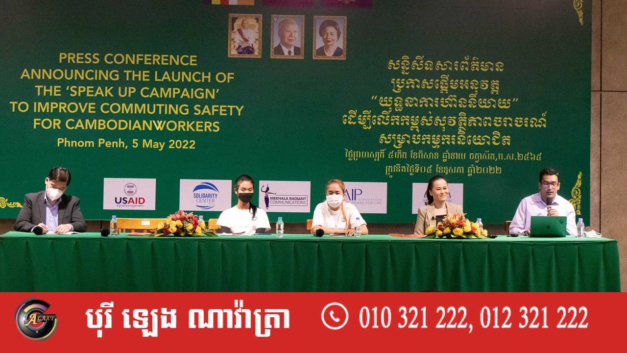 អង្គការសង្គមសុីវិលរួមគ្នារៀបចំសន្និសីទសារព័ត៌មាន ប្រកាសផ្តើមអនុវត្ត “យុទ្ធនាការហ៊ាននិយាយ” ដើម្បីលើកកម្ពស់សុវត្ថិភាពចរាចរណ៍សម្រាប់កម្មករនិយោជិត កាលពីថ្ងៃព្រហស្បតិ៍ ទី៥ ខែឧសភាម្សិលមិញ។
