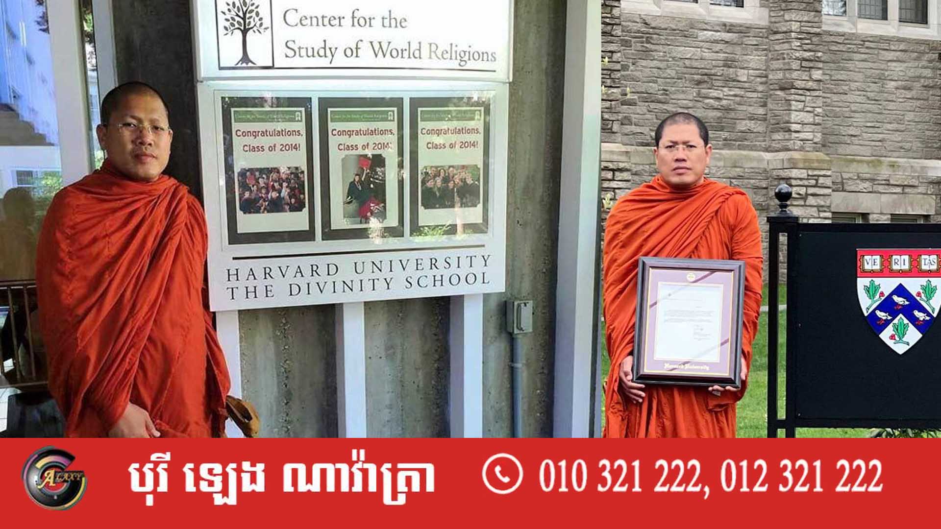 ព្រះសង្ឃខ្មែរមួយអង្គ ទទួលបាន «សក្ខីបត្រថ្នាក់​បណ្ឌិ​តរដ្ឋ» ពីសាកលវិទ្យាល័យ Harvard សហរដ្ឋអាមេរិក