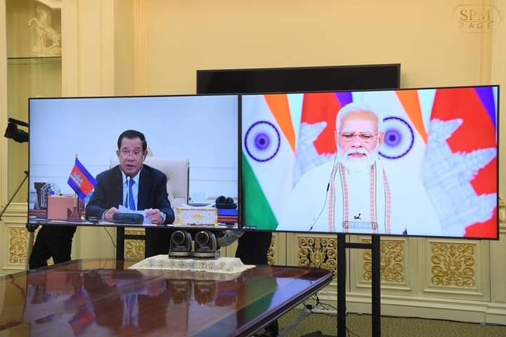 នៅក្នុងជំនួបនេះ សម្ដេចតេជោ ហ៊ុន សែន បានស្វាគមន៍ឯកឧត្តមនាយករដ្ឋមន្ត្រីឥណ្ឌា។ សម្តេចតេជោបានប្រសាសន៍បញ្ជាក់ថា សម្តេចបានជួបឯកឧត្តមនាយករដ្ឋមន្ត្រីឥណ្ឌា តាំងពីខែ៦ ឆ្នាំ២០២០មក ម៉្លេះ តាមរយៈប្រព័ន្ធវីដេអូដូចគ្នា ។ សម្ដេចតេជោបានគូសបញ្ជាក់អំពីការបង្កើតទំនាក់ទំនងការទូតរវាងកម្ពុជា និងឥណ្ឌា តាំងពីឆ្នាំ១៩៨១។ គិតមកដល់ឆ្នាំ២០២២នេះ គឺជាខួបលើកទី៧០ឆ្នាំហើយនៃទំនាក់ទំនងការទូតរវាងកម្ពុជា និងឥណ្ឌា។ ដើម្បីប្រារព្ធខួបបនៃទំនាក់ទំនងការទូតនេះ ប្រទេសទាំងពីរនឹងត្រៀមរៀបចំពិធីអបអរសាទរខួបលើកទី៧០ឆ្នាំនេះផងដែរ ក្នុងស្មារតីសាមគ្គីភាព និងកិច្ចសហប្រតិបត្តិការរវាងប្រទេសទាំងពីរ។