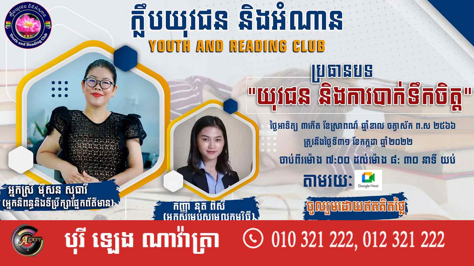 អ្នកស្រី ម៉ីសន សុធារី ដែលប្រិយមិត្តបានដឹងហើយថា ជាអ្នកនិពន្ធនិងទីប្រឹក្សាផ្នែកព័ត៌មាន ដែលមានគំនិតទូលំទូលាយ មានចក្ខុវិស័យវែងឆ្ងាយ មានបទពិសោធច្រើនឆ្នាំក្នុងវិស័យព័ត៌មាន នឹងអញ្ជើញជាអធិបតីក្នុងកម្មវិធី យុវជននិងការបាក់ទឹកចិត្ត ដែលក្លឹបយុវជននិងអំណានរៀបចំឡើងក្នុងបំណងបើកចក្ខុយុវជនឱ្យភ្លឺឡើង ដើម្បីរៀបចំលម្អជីវិតឡើងវិញ។