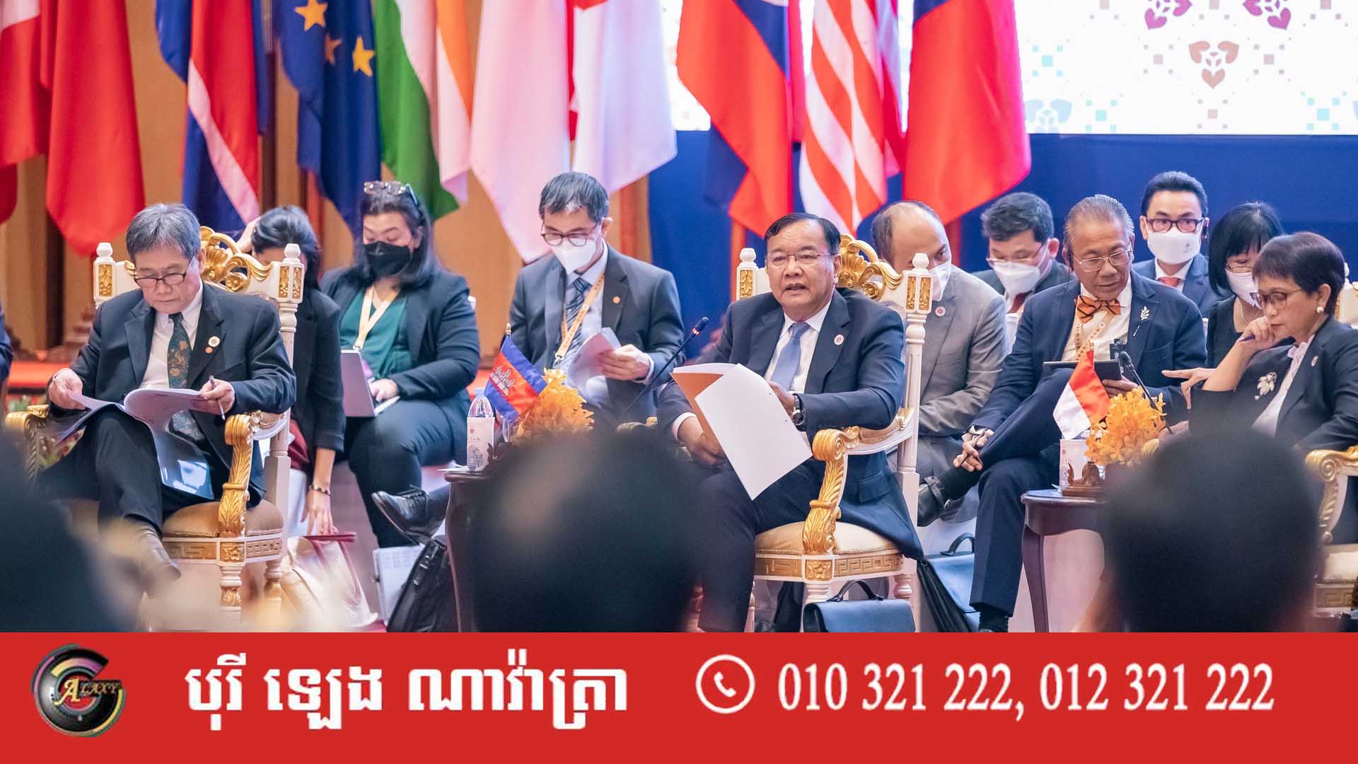 កាលពីថ្ងៃទី៤ និងទី៥ ខែសីហា ឆ្នាំ២០២២ លោក ប្រាក់ សុខុន ឧបនាយករដ្ឋមន្រ្តី រដ្ឋមន្រ្តីក្រសួងការបរទេស និងសហប្រតិបត្តិអន្តរជាតិ បានចូលរួមកិច្ចប្រជុំថ្នាក់រដ្ឋមន្ត្រីចំនួនប្រាំពីរ រួមមាន អាស៊ាន-ចិន អាស៊ាន-ជប៉ុន អាស៊ាន-សហរដ្ឋអាមេរិក អាស៊ាន-រុស្ស៊ី អាស៊ានបូកបីលើកទី២៣ កិច្ចប្រជុំកំពូលអាស៊ីបូព៌ាលើកទី១២ និងវេទិកាតំបន់អាស៊ានលើកទី២៩។