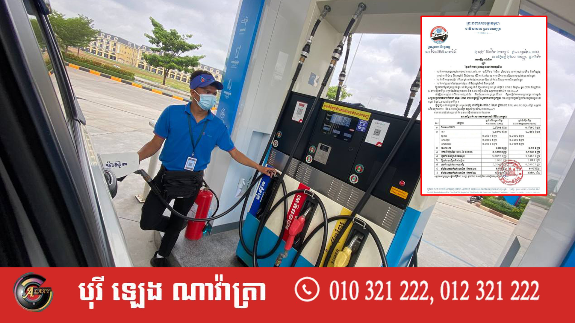 យោងតាមសេចក្តីជូនដំណឹងរបស់ក្រសួងពាណិជ្ជកម្ម តម្លៃប្រេងឥន្ធនៈចាប់ពីថ្ងៃទី០១ ដល់ថ្ងៃទី១០ ខែតុលា ឆ្នាំ២០២២នេះគឺ ប្រេងសាំងធម្មតា ៤.២៥០រៀល/លីត្រ (ចុះ ១០០រៀល) និងប្រេងម៉ាស៊ូត ៤.៧០០រៀល (ចុះ ១៥០រៀល)។