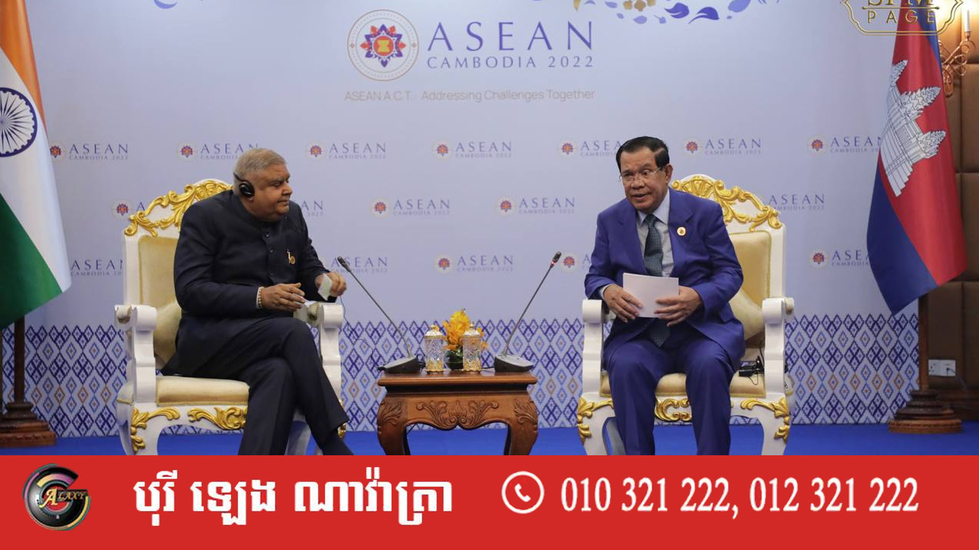 មេដឹកនាំកម្ពុជា សម្តេចតេជោ ហ៊ុន សែន និងលោក Jagdeep Dhankha អនុប្រធានាធិបតីឥណ្ឌា ជួបពិភាក្សាការងារ ដាច់ដោយឡែកពីកិច្ចប្រជុំកំពូលអាស៊ានលើកទី៤០-៤១ និងកិច្ចប្រជុំពាក់ព័ន្ធ នៅថ្ងៃទី១២ ខែវិច្ឆិកា ឆ្នាំ២០២២នេះ នឹងបានផ្លាស់ប្តូរឯកសារដែលបានចុះហត្ថលេខារួចចំនួន៤ ។