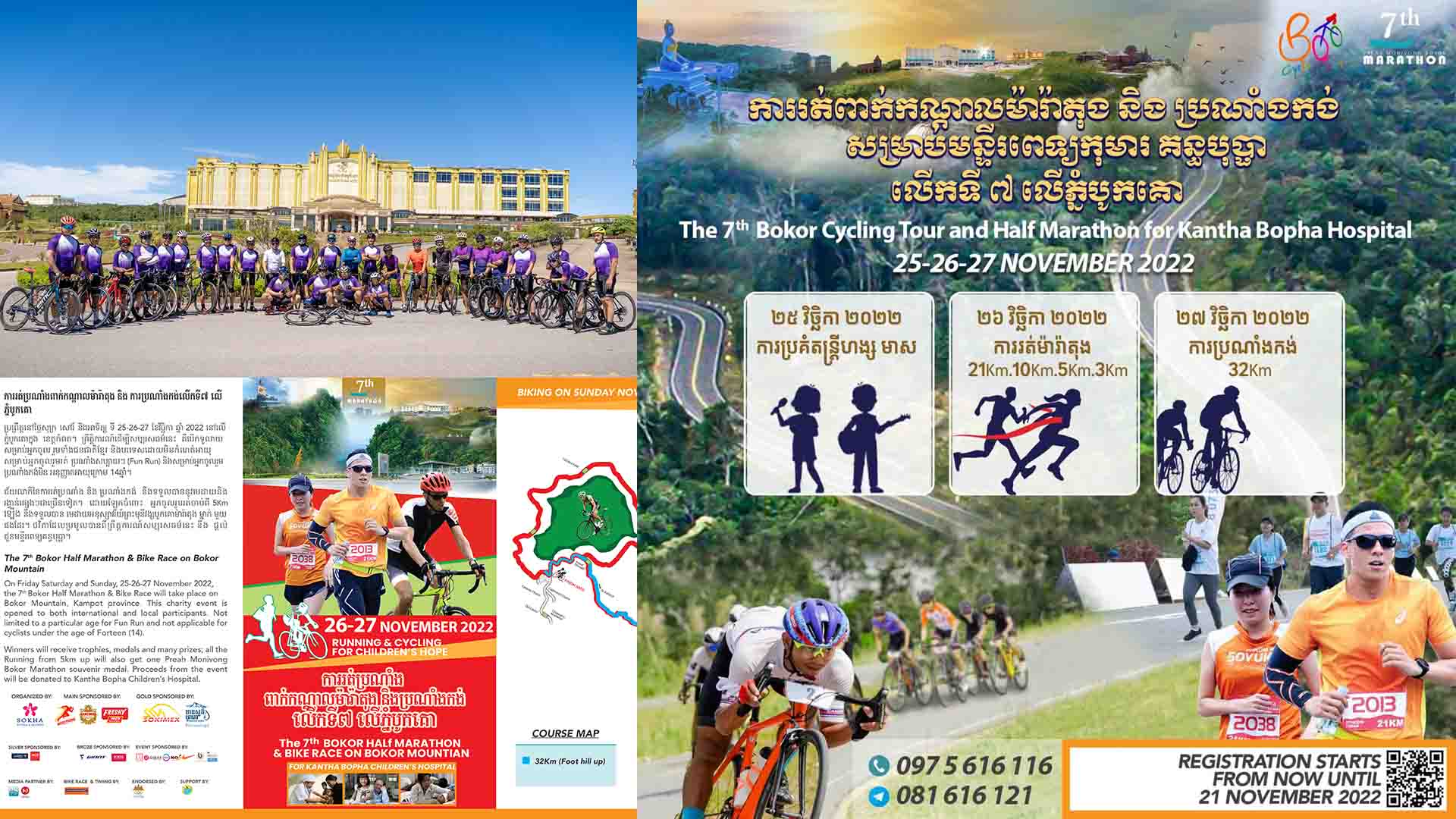 នាថ្ងៃទី២៦-២៧ ខែវិច្ឆិកា ឆ្នាំ២០២២, អ្នកឧកញ៉ា សុខ គង់ និងក្រុមការងាររបស់សណ្ឋាគារ ឋានសួគ៌ សុខា បូកគោ ត្រៀមរៀបចំ ព្រឹត្តិការណ៍ការរត់ប្រណាំងអន្តរជាតិពាក់កណ្តាលម៉ារ៉ាតុង និងប្រណាំងកង់លើកទី៧ នៅលើភ្នំបូកគោ ដើម្បីប្រមូលទឹកប្រាក់បរិច្ចាគជូនទៅមន្ទីរពេទ្យកុមារគន្ធបុប្ផា។
