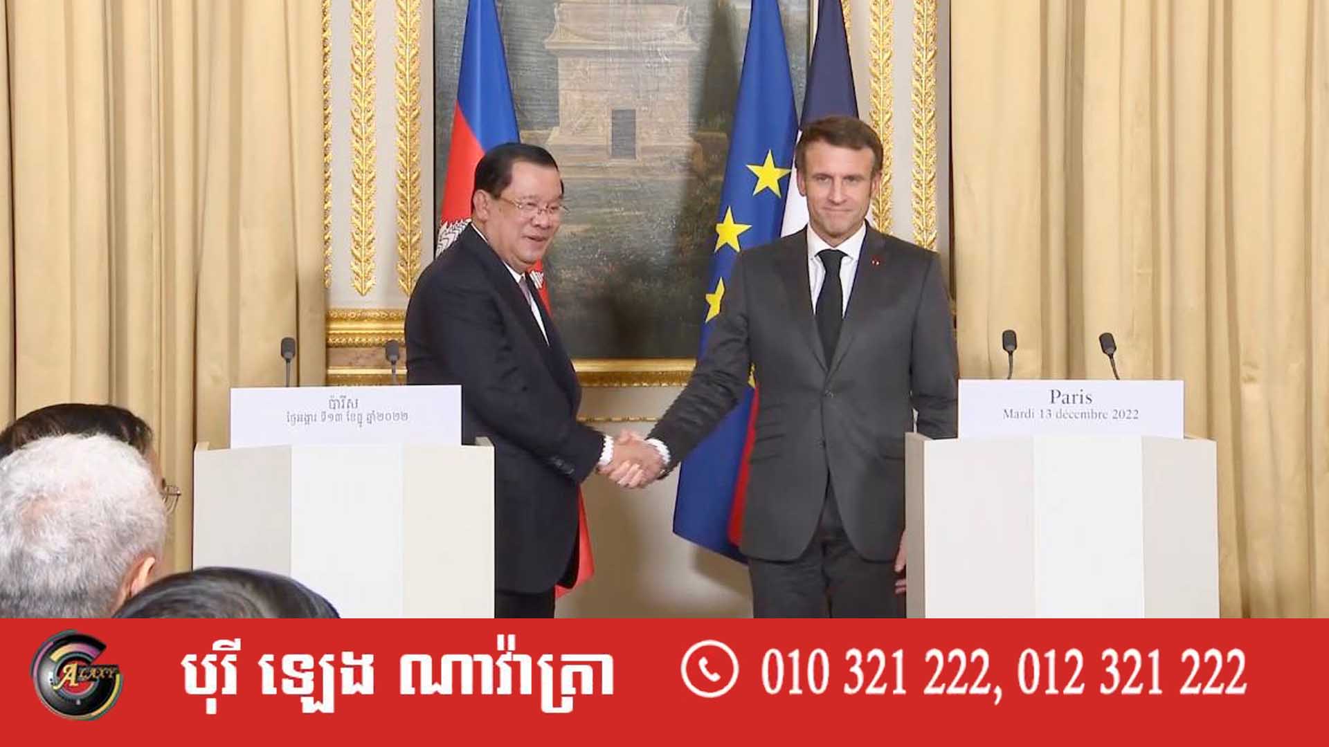 នៅក្នុងសន្និសីទព័ត៌មានរួមគ្នានៅវិមានអេលីហ្សេ កាលពីថ្ងៃទី១៣ ខែធ្នូ ឆ្នាំ២០២២ សម្តេចតេជោ ហ៊ុន សែន នាយករដ្ឋមន្រ្តីនៃកម្ពុជា និងប្រធានាធិបតីបារាំង លោក អេម៉ានុយអែល ម៉ាក្រុង បានគូសរំលេចឡើងវិញអំពីចំណង ទំនាក់ទំនង និងកិច្ចសហប្រតិបត្តិការដ៏យូរលង់រវាងប្រទេសទាំងពីរ។