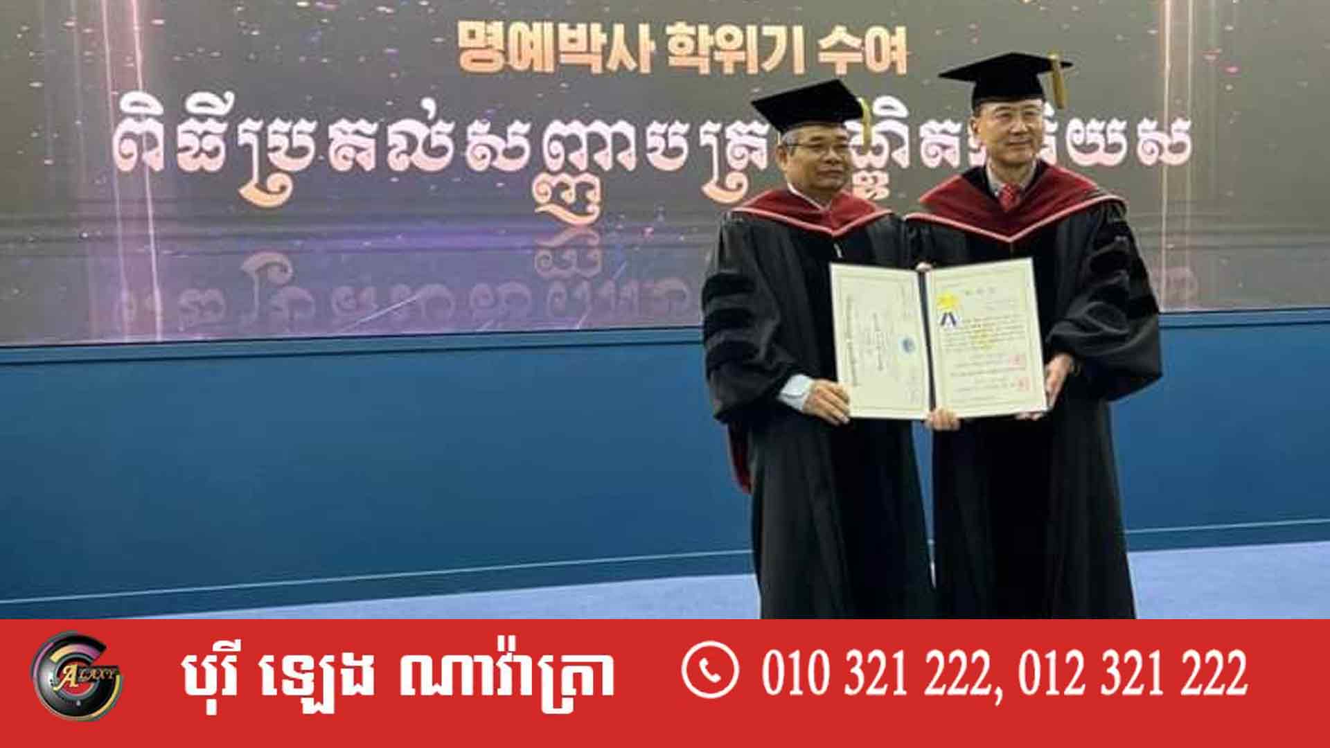 លោក យឹម ឆៃលី ទទួលបានសញ្ញាបត្របណ្ឌិតកិត្តិយសផ្នែកអភិវឌ្ឍន៍អន្តរជាតិ ពីសាកលវិទ្យាល័យ យ៉ុងណាម (Yeungnam University) នៃសាធារណរដ្ឋកូរ៉េ កាលពីថ្ងៃទី២០ ខែធ្នូ ឆ្នាំ២០២២។