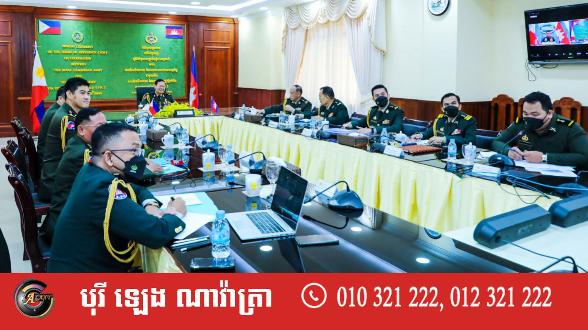 ការចុះហត្ថលេខារួមគ្នាលើឯកសារ “លក្ខខណ្ឌស្តីពីកិច្ចសហប្រតិបត្តិការរវាងកងទ័ពជើងគោកកម្ពុជា និងហ្វីលីពីន បានធ្វើឡើងតាមប្រព័ន្ធ VTC កាលពីថ្ងៃទី១៩ ខែមករា ឆ្នាំ២០២៣ ដោយមានលោកឧត្តមសេនីយ៍ឯក ហ៊ុន ម៉ាណែត អគ្គមេបញ្ជាការរង នៃកងយោធពលខេមរភូមិន្ទ មេបញ្ជាការកងទ័ពជើងគោក និងលោកឧត្តមសេនីយ៍ឯក ROMEO S BRAWNER JUNIOR មេបញ្ជាការកងទ័ពជើងគោកនៃសាធារណរដ្ឋហ្វីលីពីន ។