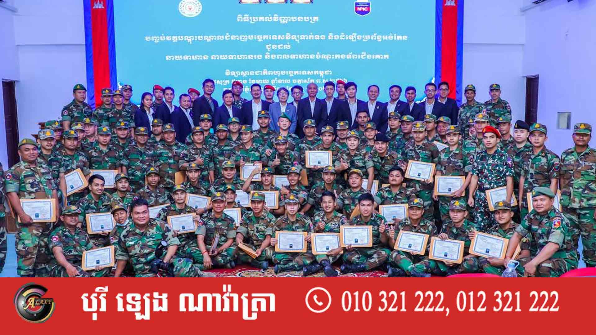ក្នុងពិធីប្រគល់វិញ្ញាបនបត្របញ្ចប់វគ្គបណ្តុះបណ្តាល នៅវិទ្យាស្ថានជាតិពហុបច្ចេកទេសកម្ពុជា នាព្រឹកថ្ងៃទី១០ ខែកុម្ភៈ ឆ្នាំ២០២៣ លោក ហេង សួរ រដ្ឋលេខាធិការក្រសួងការងារ និងបណ្តុះបណ្តាលវិជ្ជាជីវៈ បានលើកឡើងថា នាយទាហាន នាយទាហានរង និងពលទាហាន ដែលបានបញ្ចប់ជំនាញវិទ្យុទាក់ទង និងដំឡើង ប្រព័ន្ធអង់តែន នឹងប្រើប្រាស់ជាប្រយោជន៍ ក្នុងកងអង្គភាពរបស់ខ្លួន។