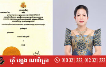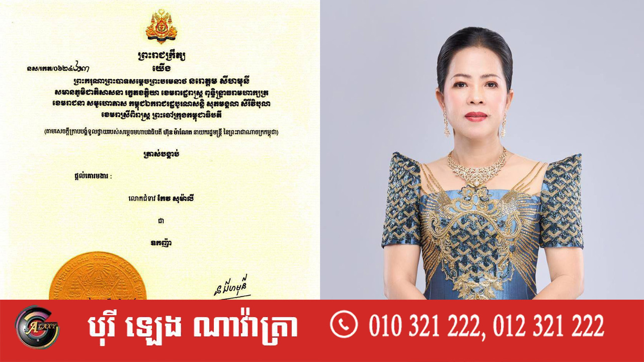 ព្រះមហាក្សត្រ ត្រាស់បង្គាប់ផ្តល់គោរមងារ «ឧកញ៉ា» ដល់លោកស្រី កែវ សុម៉ាលី