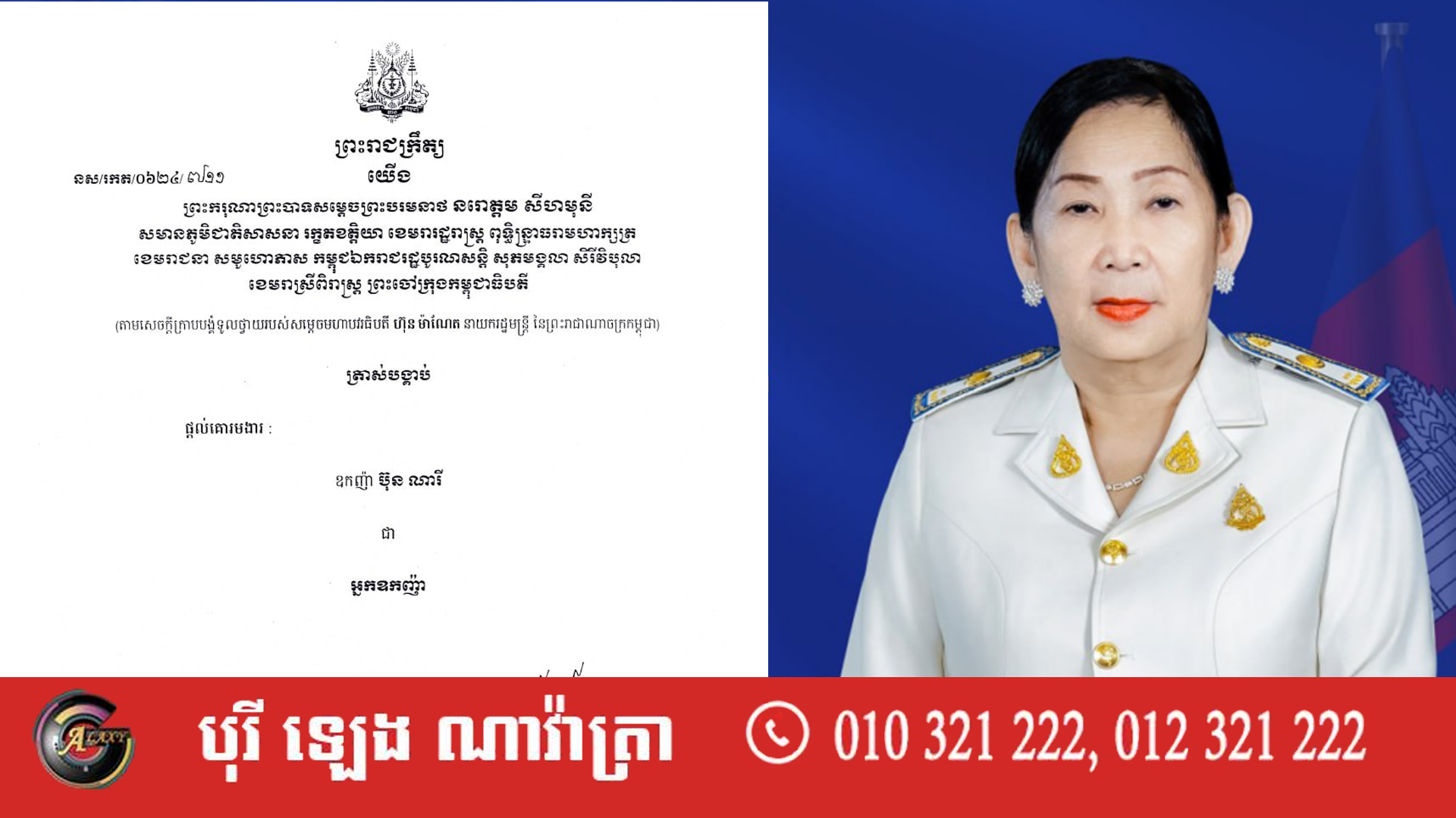 ព្រះមហាក្សត្រ ត្រាស់បង្គាប់ផ្តល់គោរមងារ «អ្នកឧកញ៉ា» ជូនឧកញ៉ា ប៊ុន ណារី សមាជិកសមាគមឧកញ៉ាកម្ពុជា