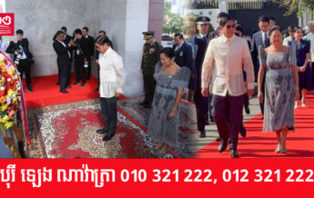 ប្រធានាធិបតីហ្វីលីពីន និងភរិយា អញ្ជើញដាក់កម្រងផ្កាគោរពវិញ្ញាណក្ខន្ធនៅវិមានឯករាជ្យ ភ្នំពេញ